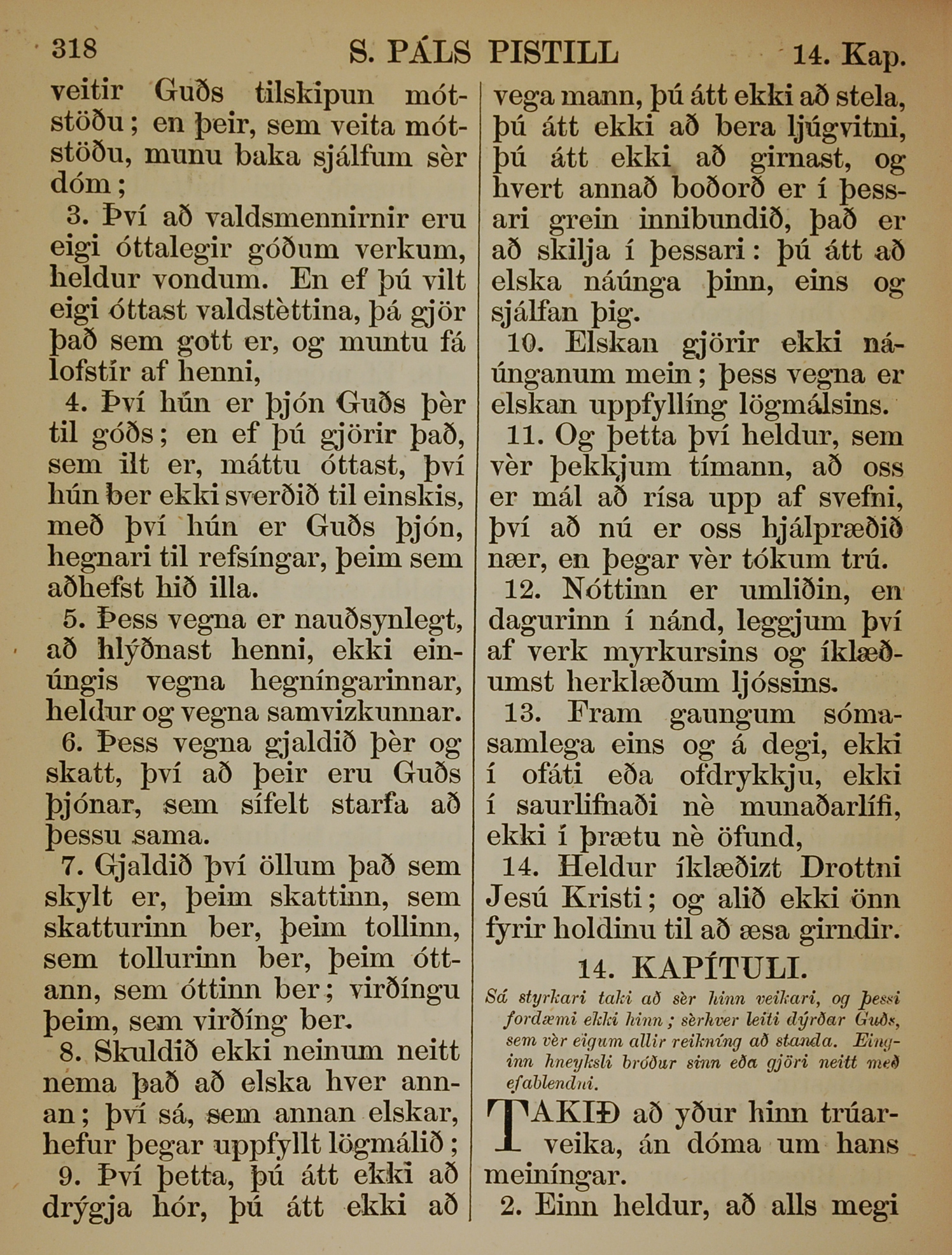 1863年冰島語新約全書 羅馬書 13 章 3 節到 14 章 2 節