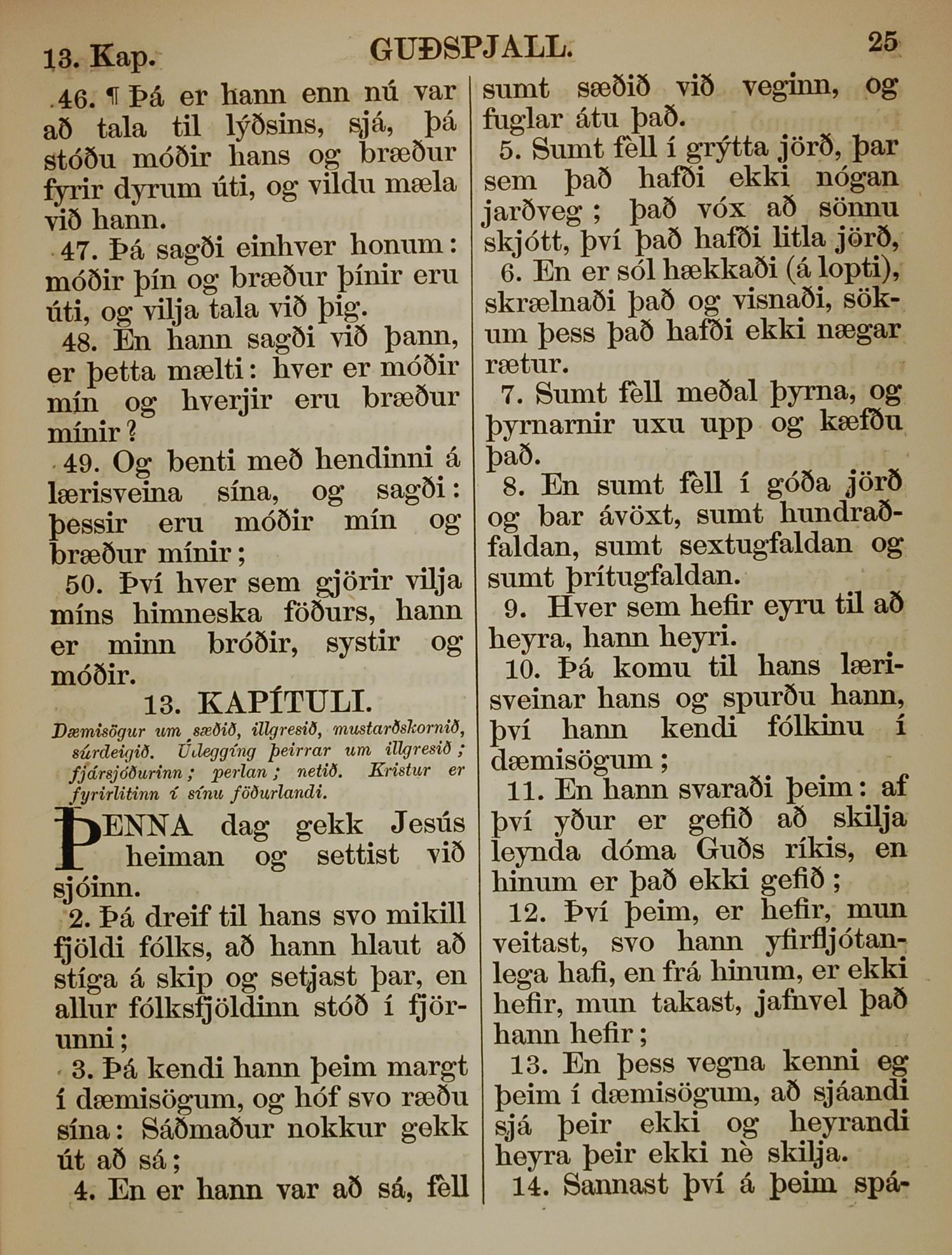1863年冰島語新約全書 馬太福音 12 章 46 節到 13 章 14 節