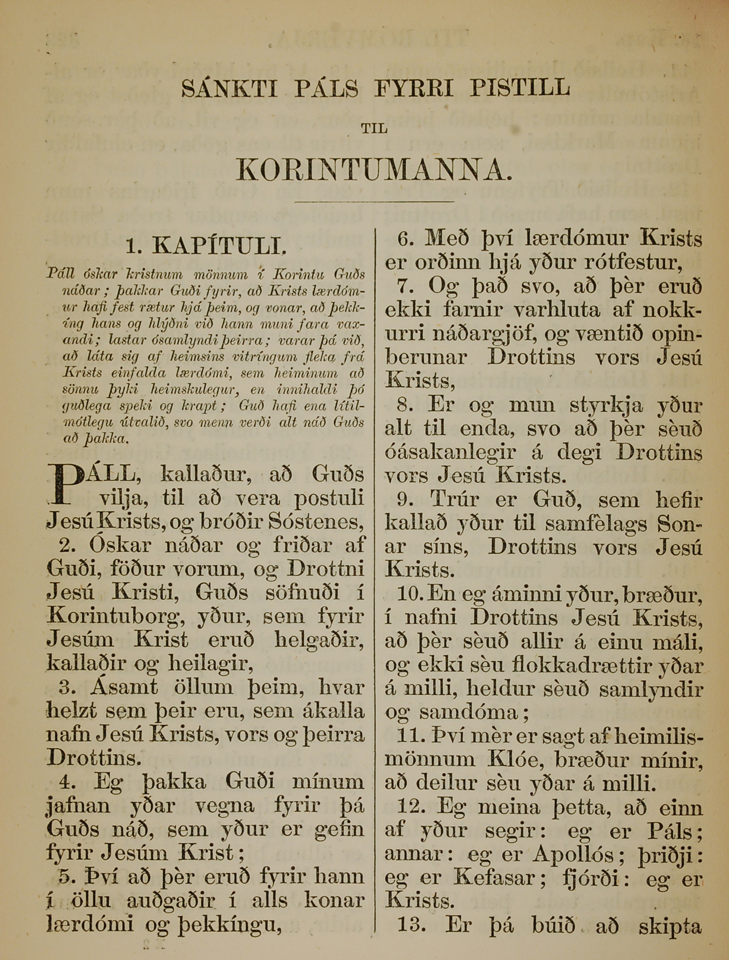 1863年冰島語新約全書 哥林多前書 1 章 1 節到 1 章 13 節