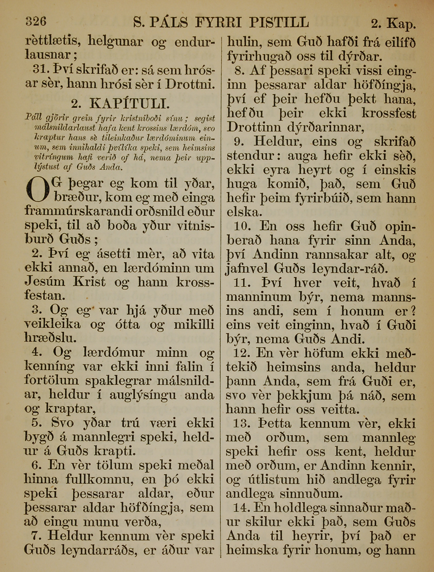 1863年冰島語新約全書 哥林多前書 1 章 31 節到 2 章 14 節