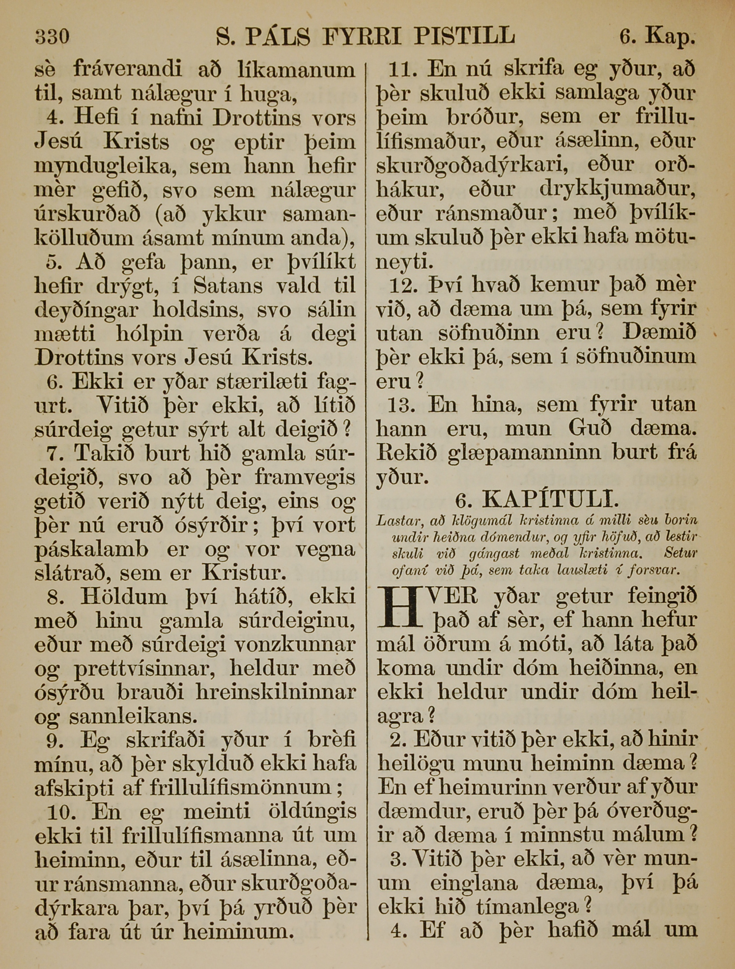 1863年冰島語新約全書 哥林多前書 5 章 4 節到 6 章 4 節