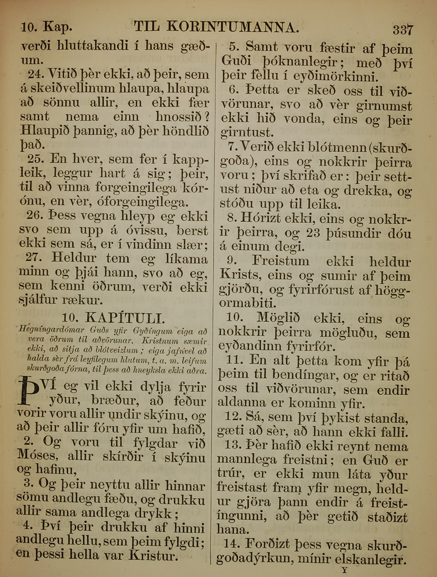 1863年冰島語新約全書 哥林多前書 9 章 24 節到 10 章 14 節
