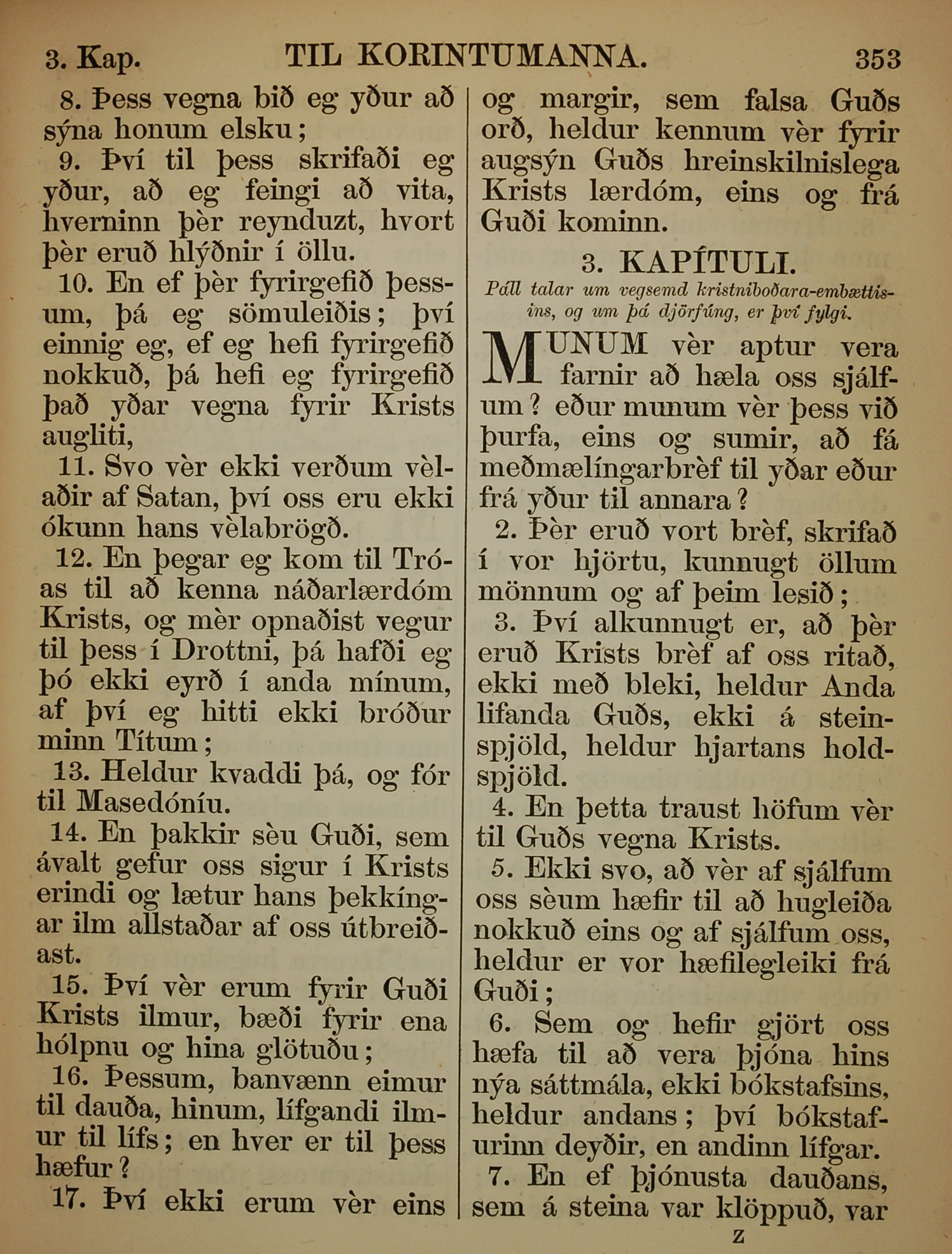 1863年冰島語新約全書 哥林多後書 2 章 8 節到 3 章 7 節