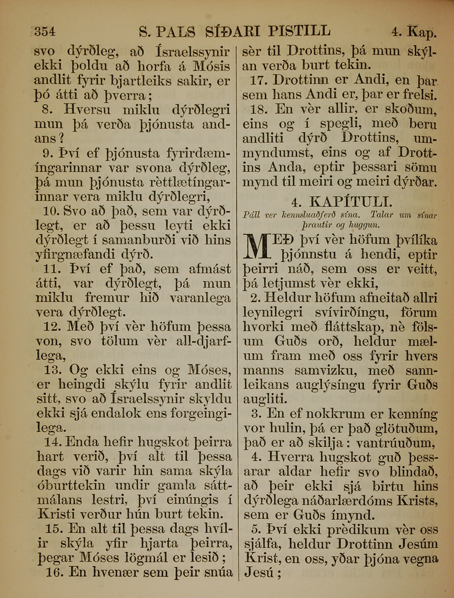 1863年冰島語新約全書 哥林多後書 3 章 8 節到 4 章 5 節