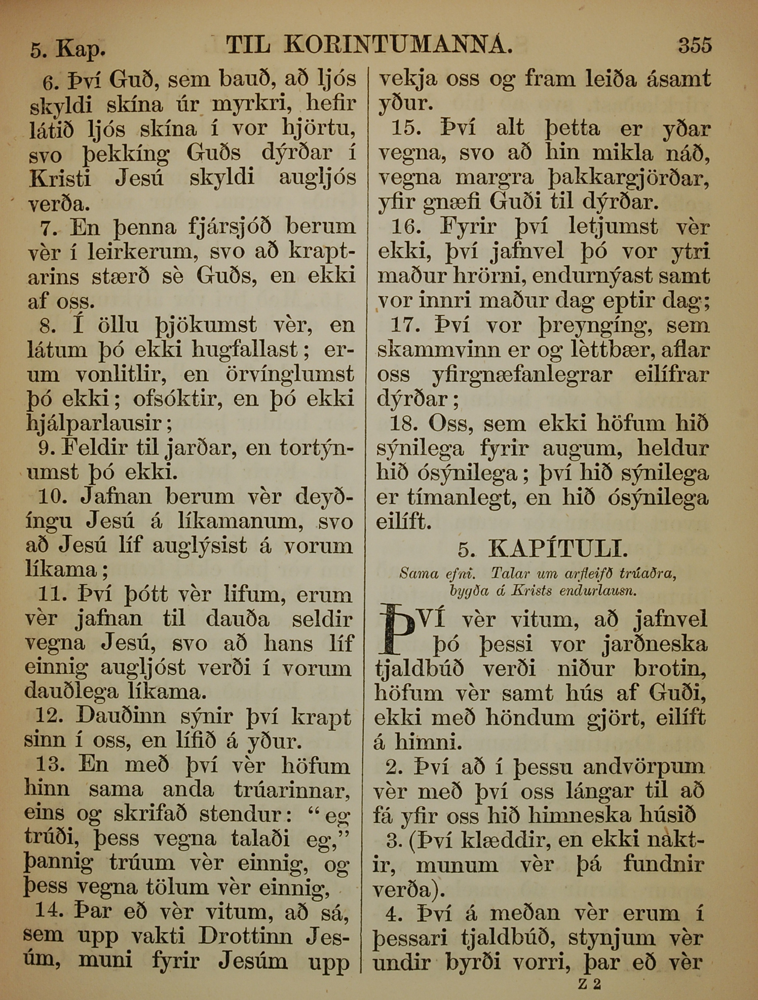 1863年冰島語新約全書 哥林多後書 4 章 6 節到 5 章 4 節