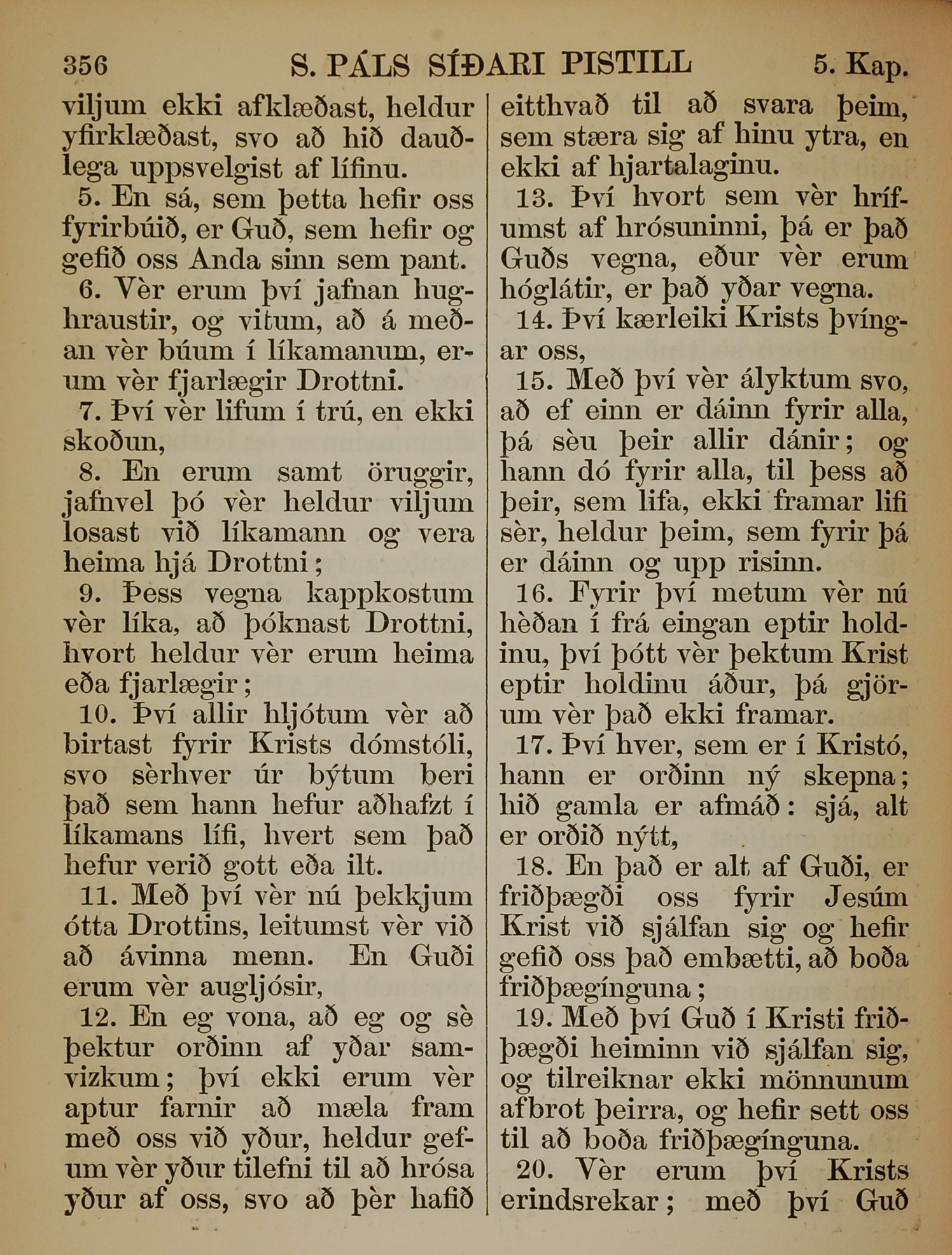 1863年冰島語新約全書 哥林多後書 5 章 5 節到 5 章 20 節