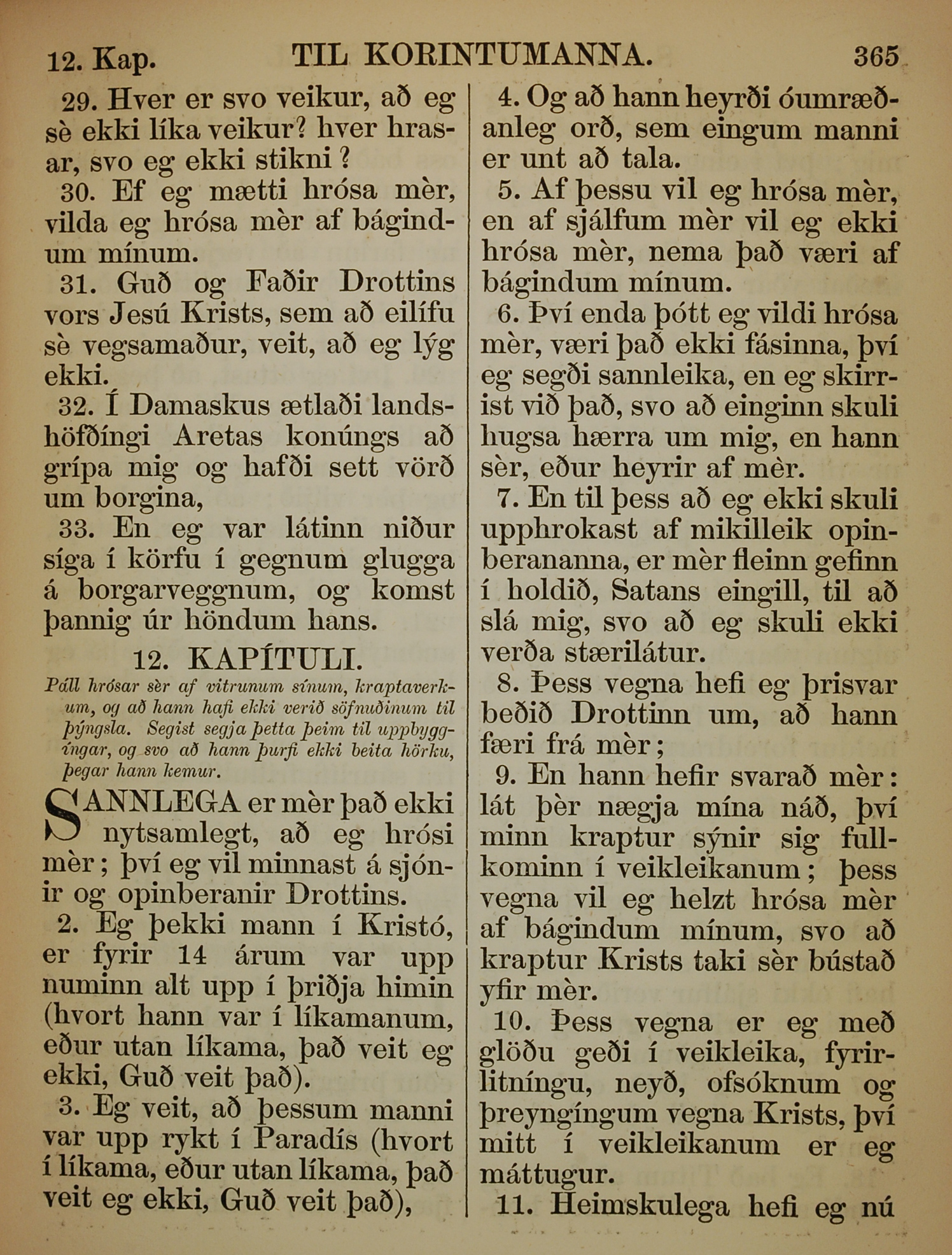 1863年冰島語新約全書 哥林多後書 11 章 29 節到 12 章 11 節