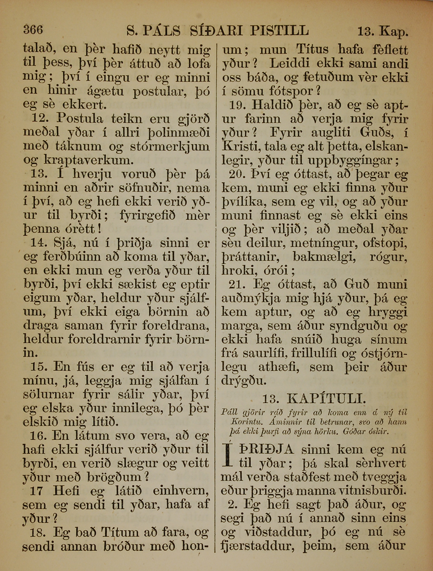 1863年冰島語新約全書 哥林多後書 12 章 12 節到 13 章 2 節