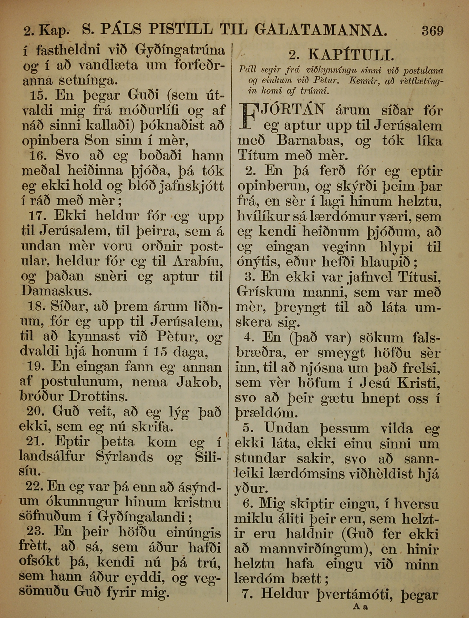 1863年冰島語新約全書 加拉太書 1 章 15 節到 2 章 7 節