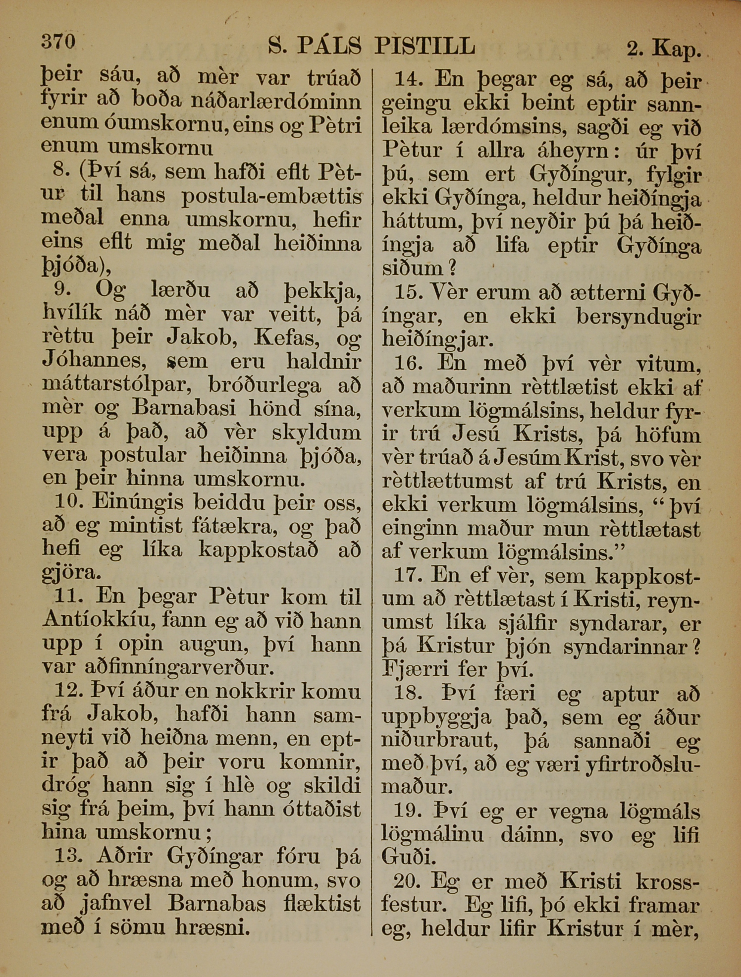 1863年冰島語新約全書 加拉太書 2 章 8 節到 2 章 20 節
