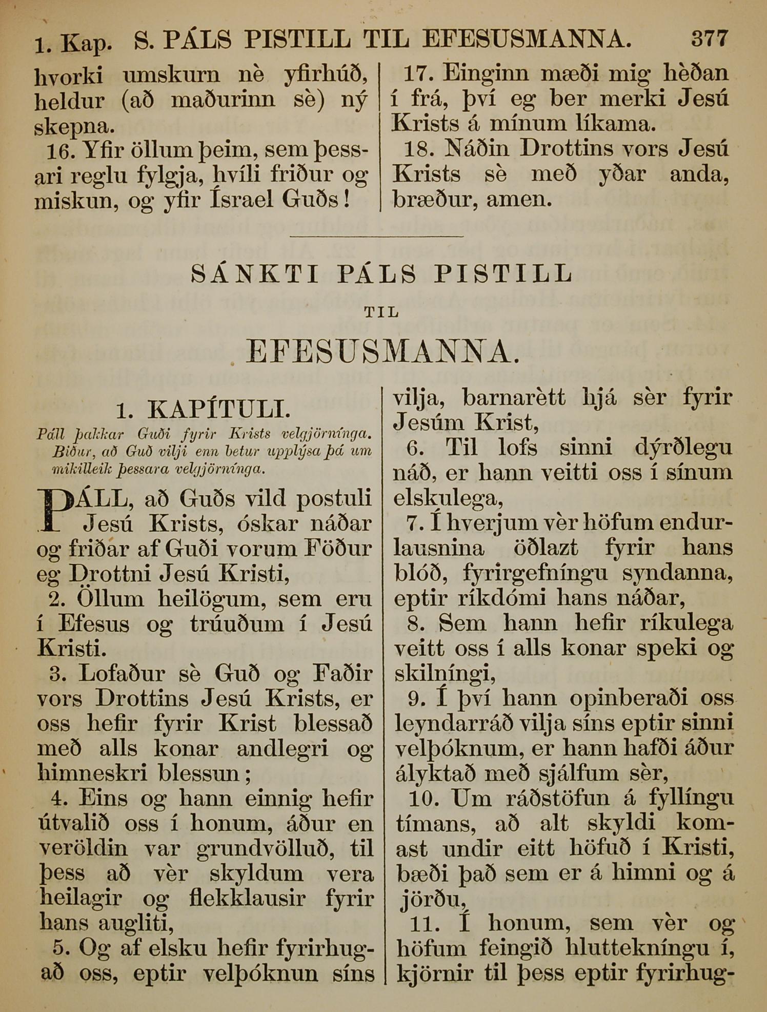 1863年冰島語新約全書 以弗所書 1 章 1 節到 1 章 11 節