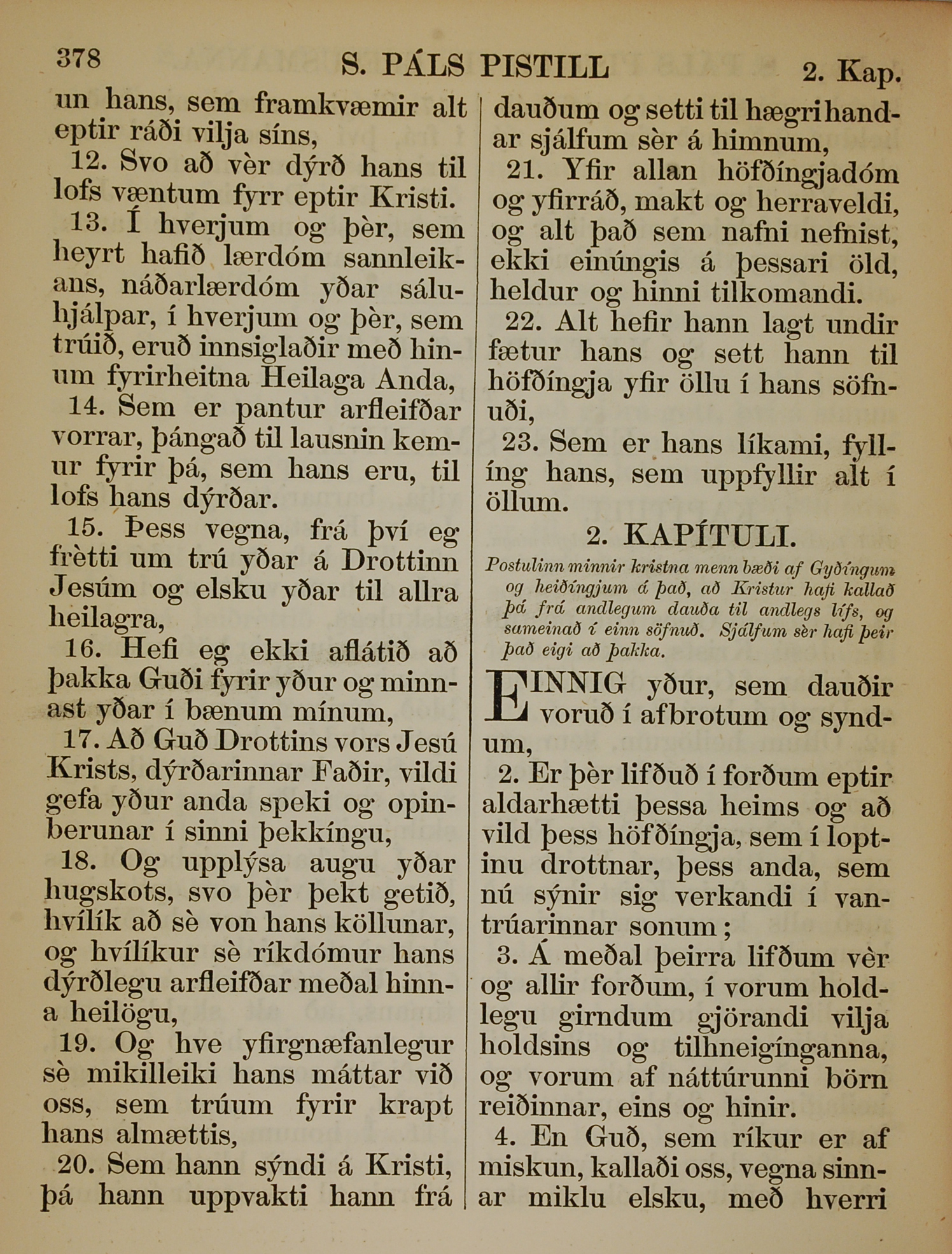 1863年冰島語新約全書 以弗所書 1 章 12 節到 2 章 4 節
