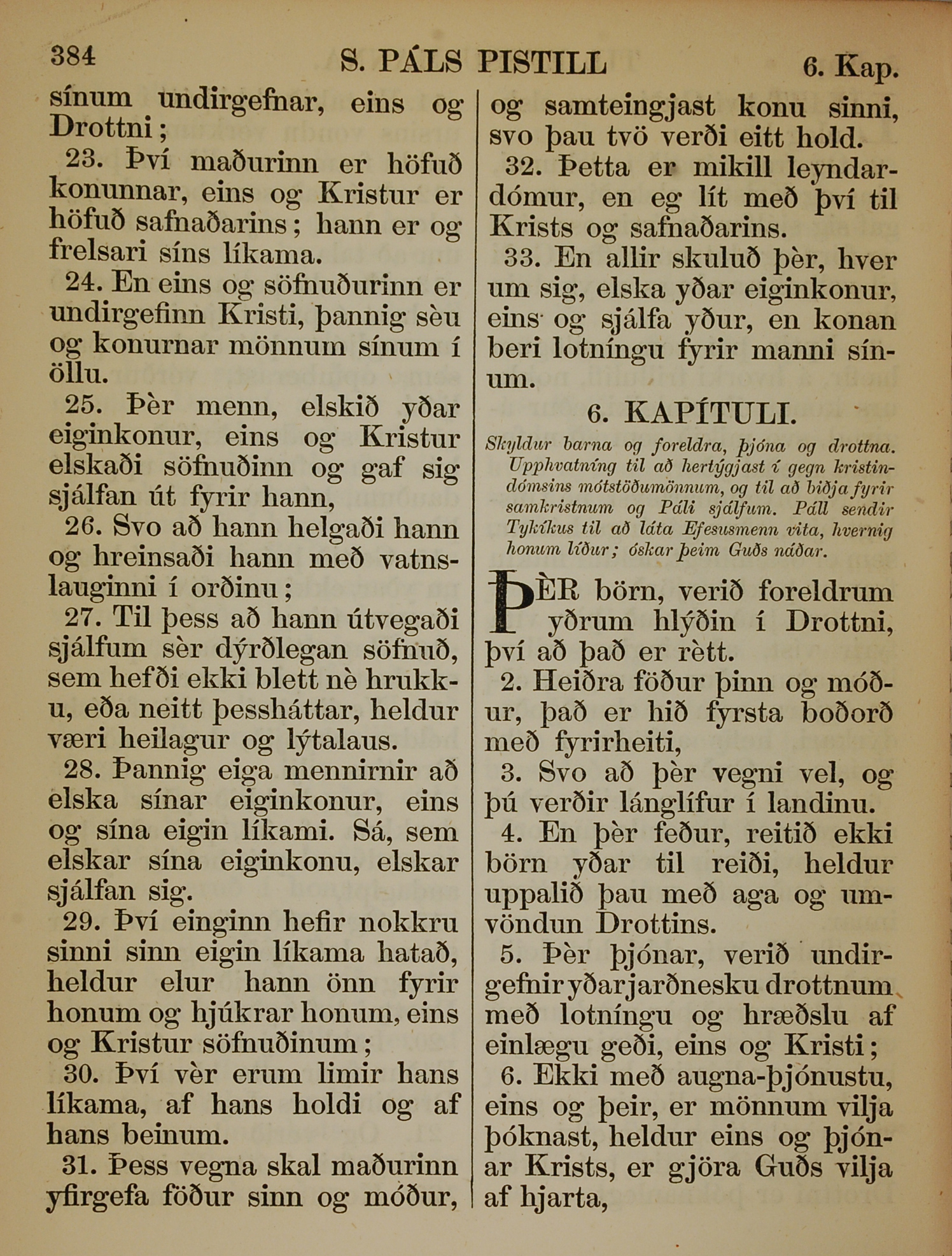 1863年冰島語新約全書 以弗所書 5 章 23 節到 6 章 6 節