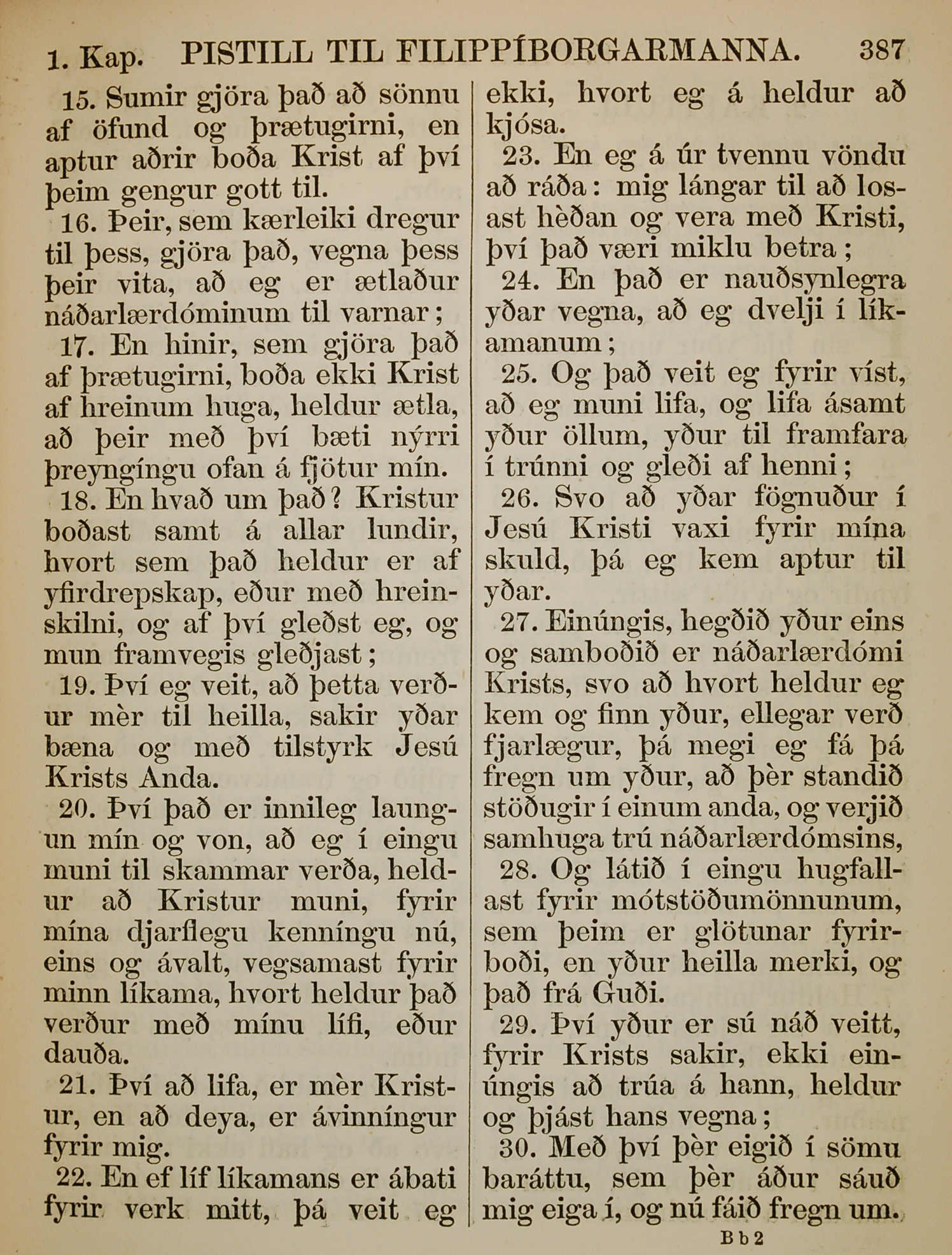 1863年冰島語新約全書 腓立比書 1 章 15 節到 1 章 30 節