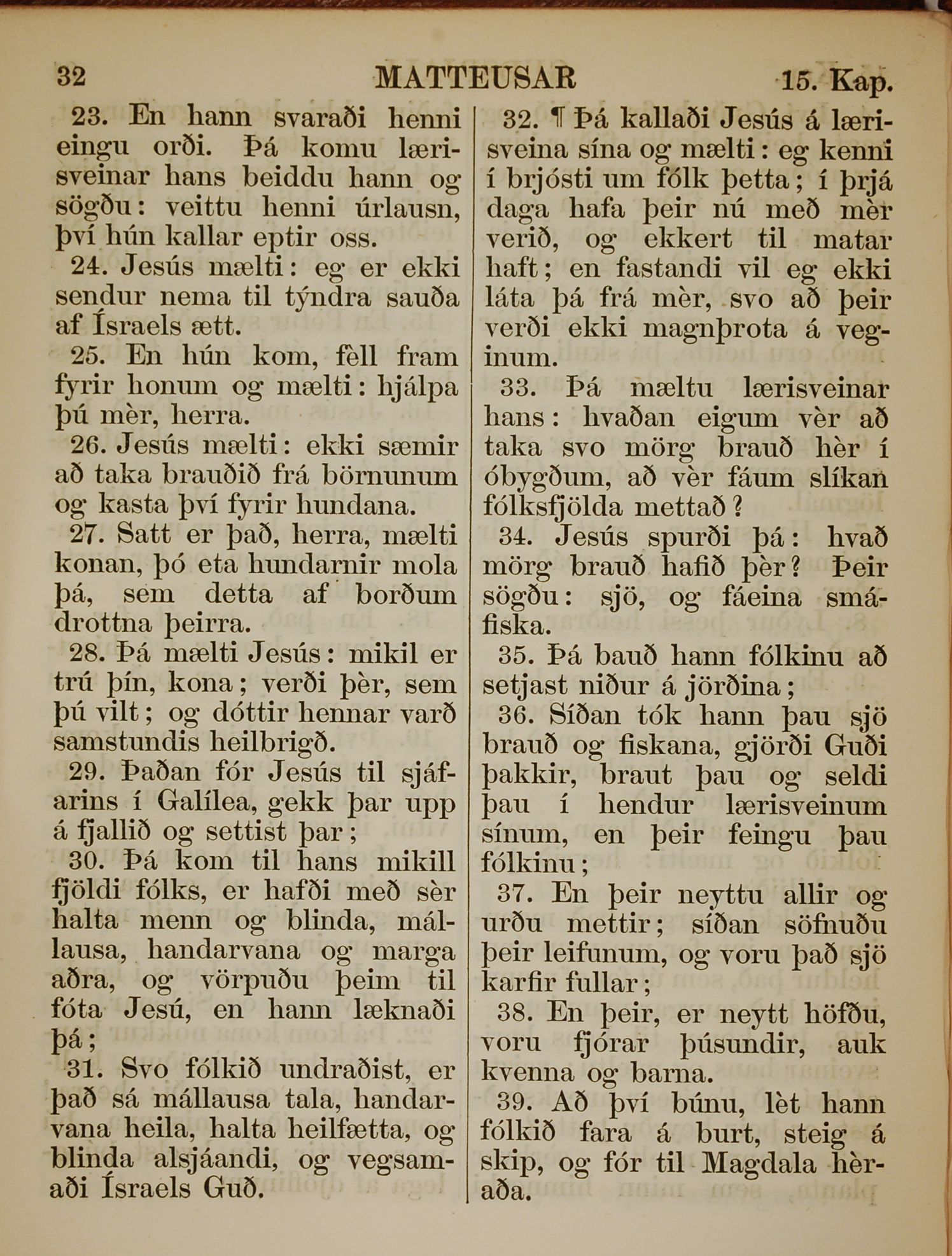 1863年冰島語新約全書 馬太福音 15 章 23 節到 15 章 39 節