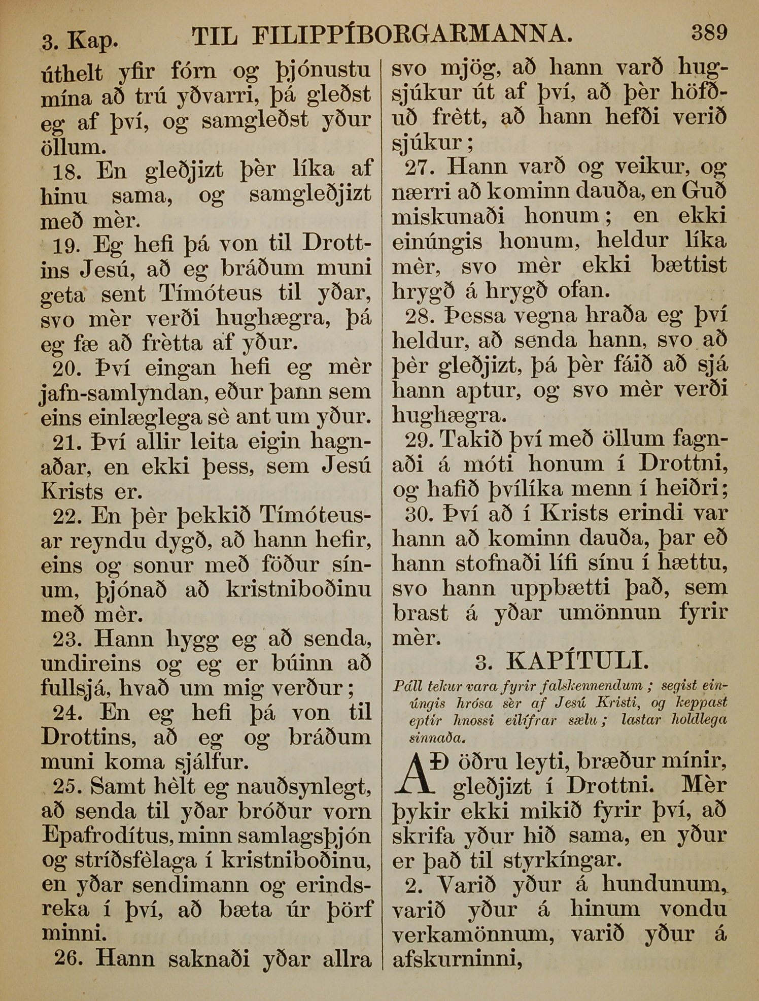 1863年冰島語新約全書 腓立比書 2 章 18 節到 3 章 2 節