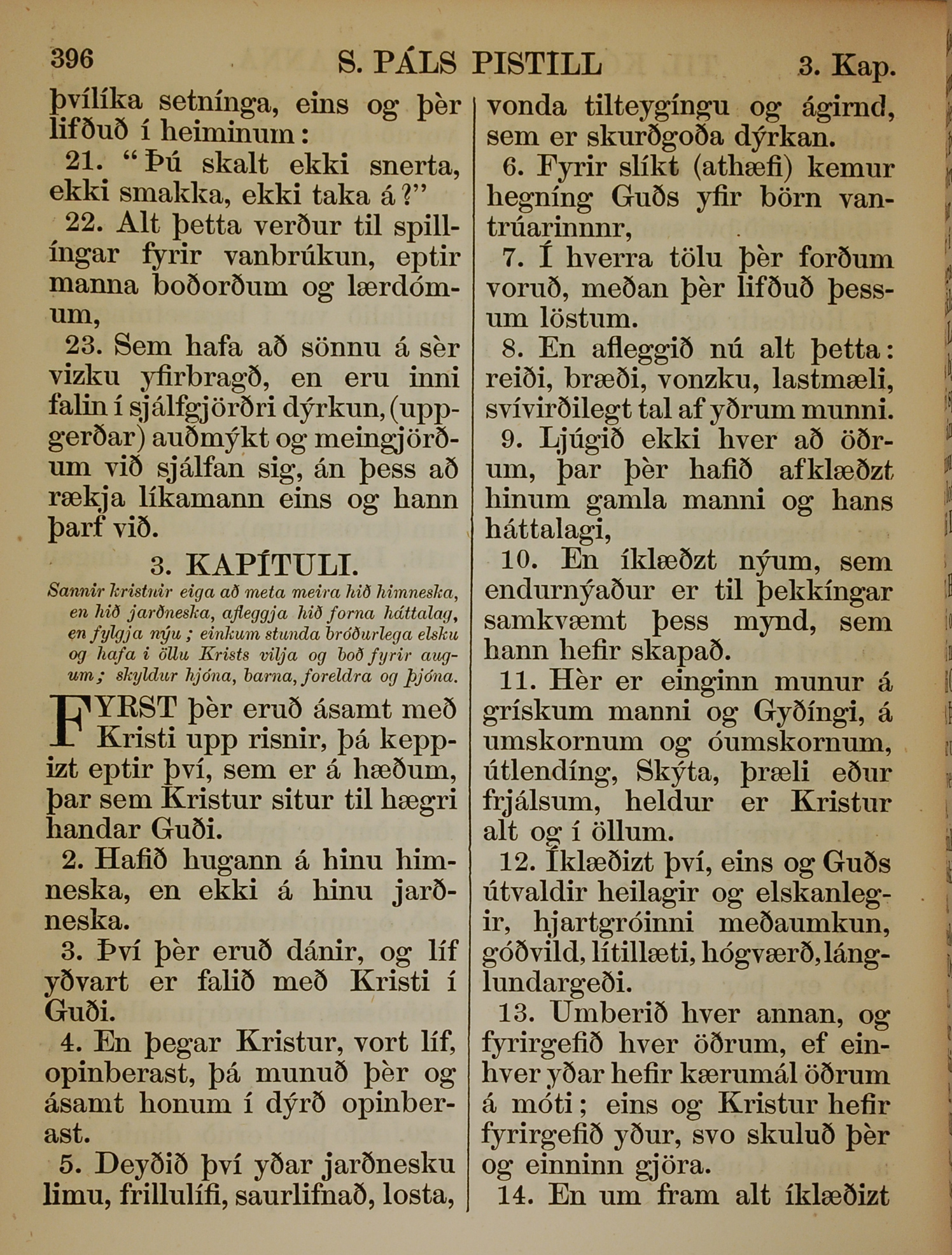 1863年冰島語新約全書 歌羅西書 2 章 21 節到 3 章 14 節