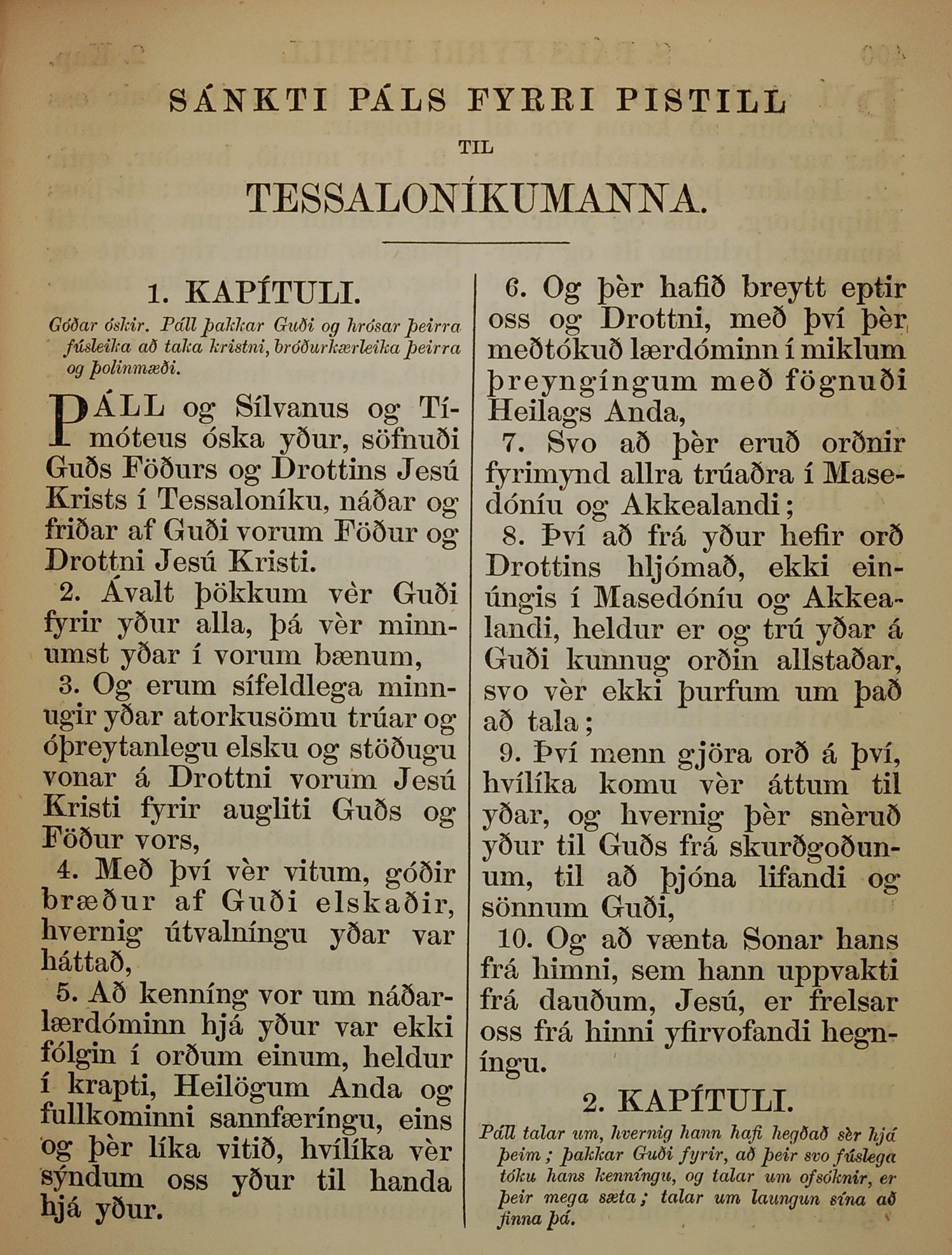 1863年冰島語新約全書 帖撒羅尼迦前書 1 章 1 節到 1 章 10 節