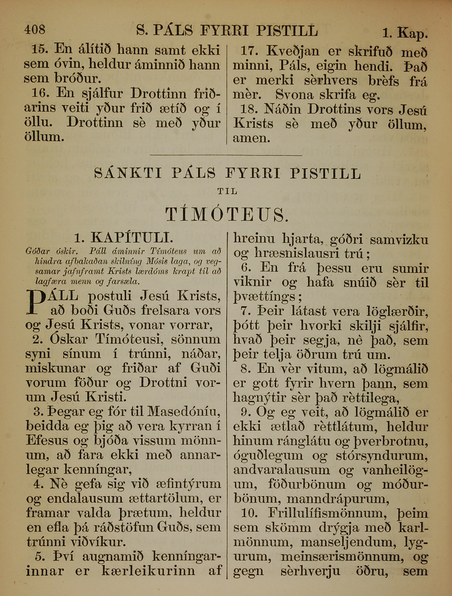 1863年冰島語新約全書 帖撒羅尼迦後書 3 章 15 節到 3 章 18 節