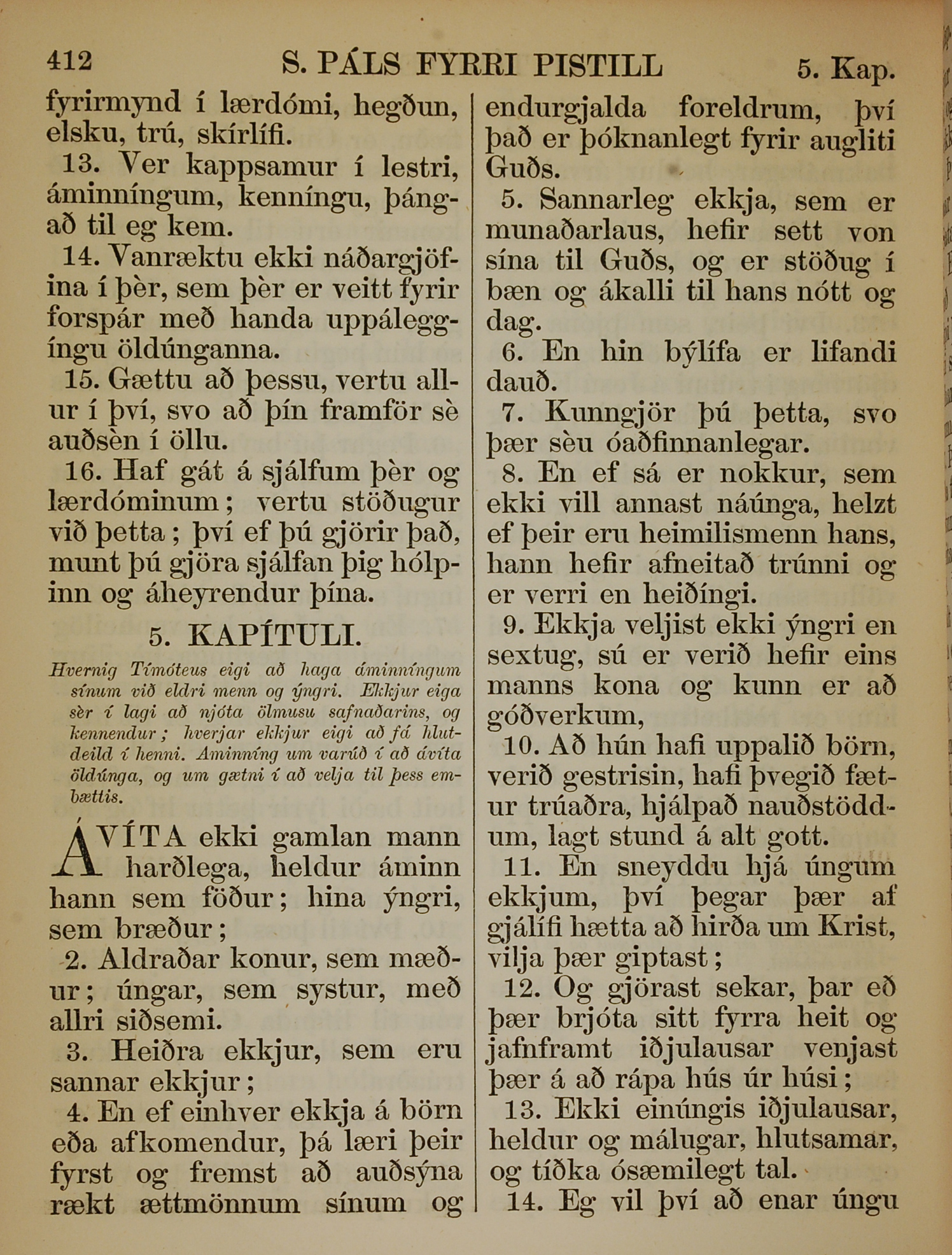 1863年冰島語新約全書 提摩太前書 4 章 13 節到 5 章 14 節