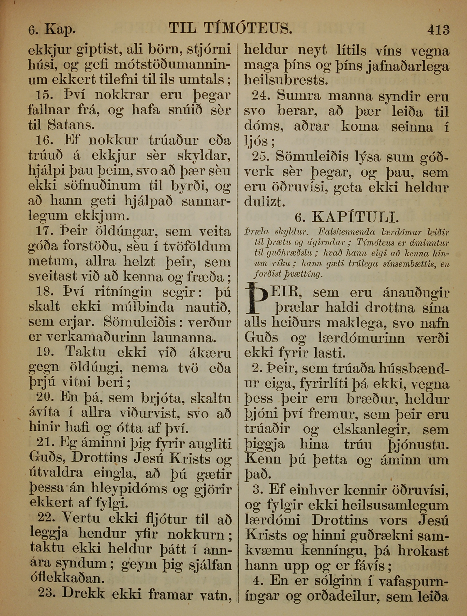 1863年冰島語新約全書 提摩太前書 5 章 15 節到 6 章 4 節
