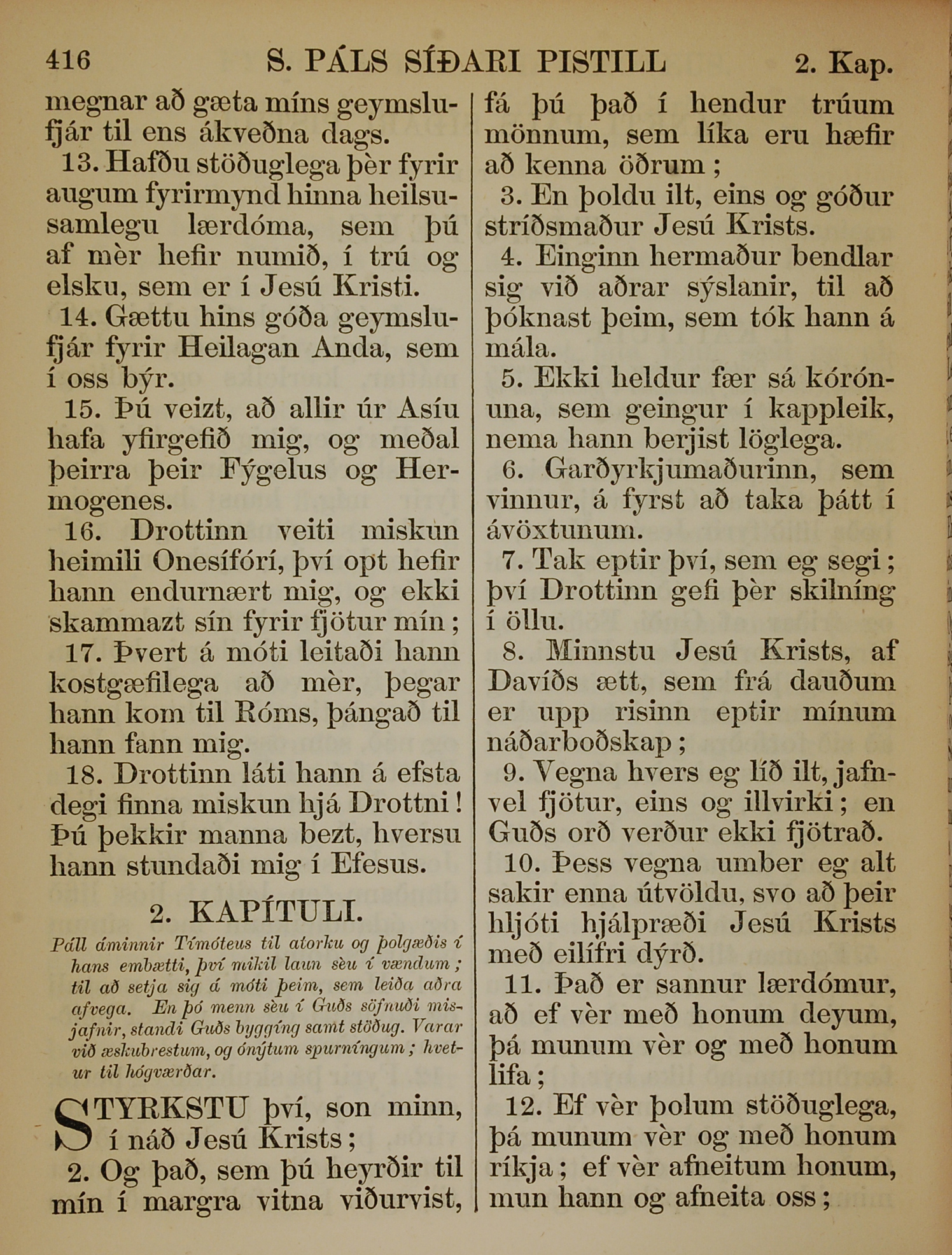 1863年冰島語新約全書 提摩太後書 1 章 13 節到 2 章 12 節