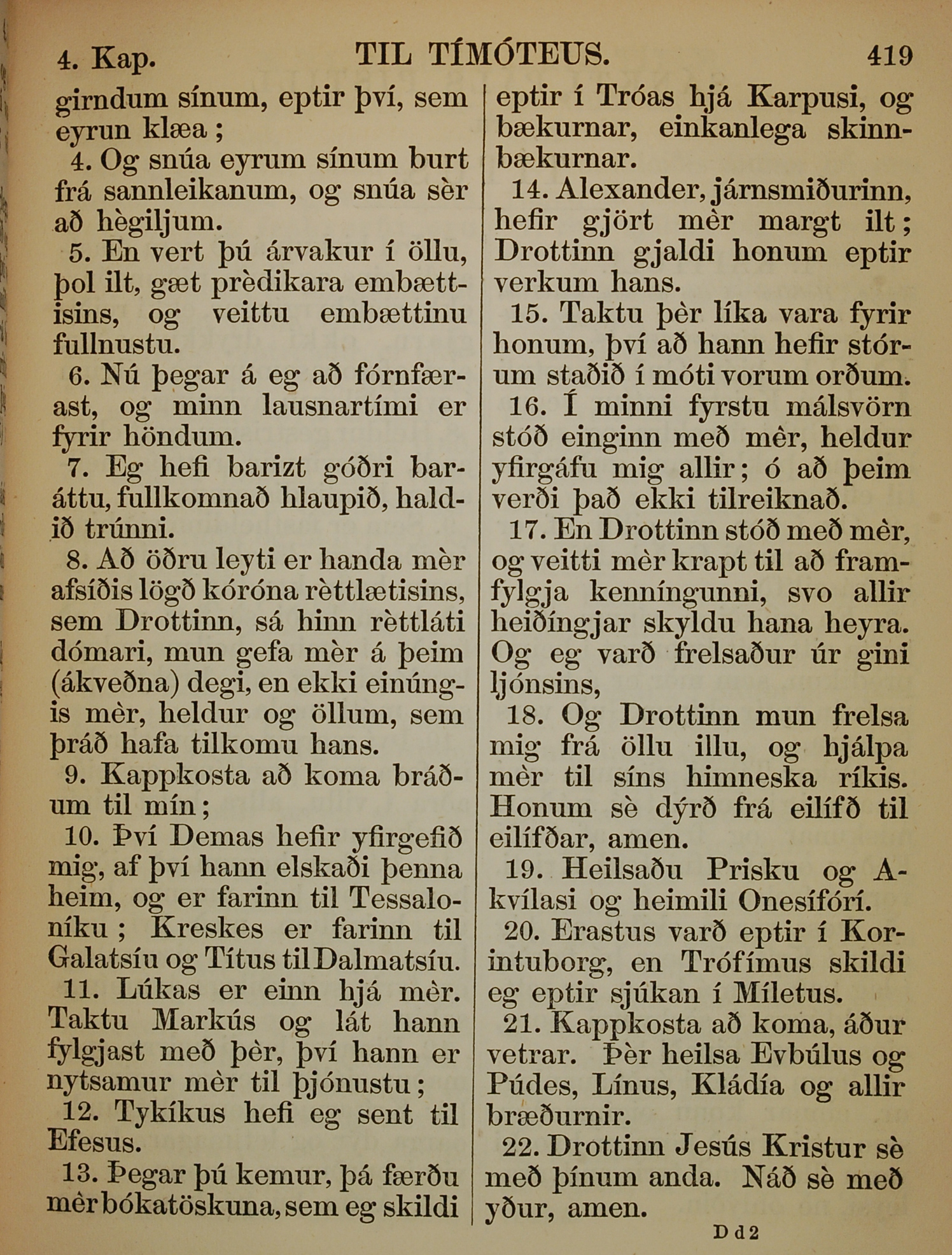 1863年冰島語新約全書 提摩太後書 4 章 4 節到 4 章 22 節