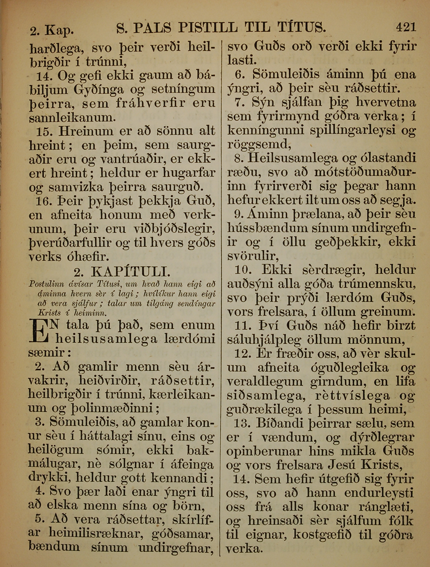 1863年冰島語新約全書 提多書 1 章 14 節到 2 章 14 節