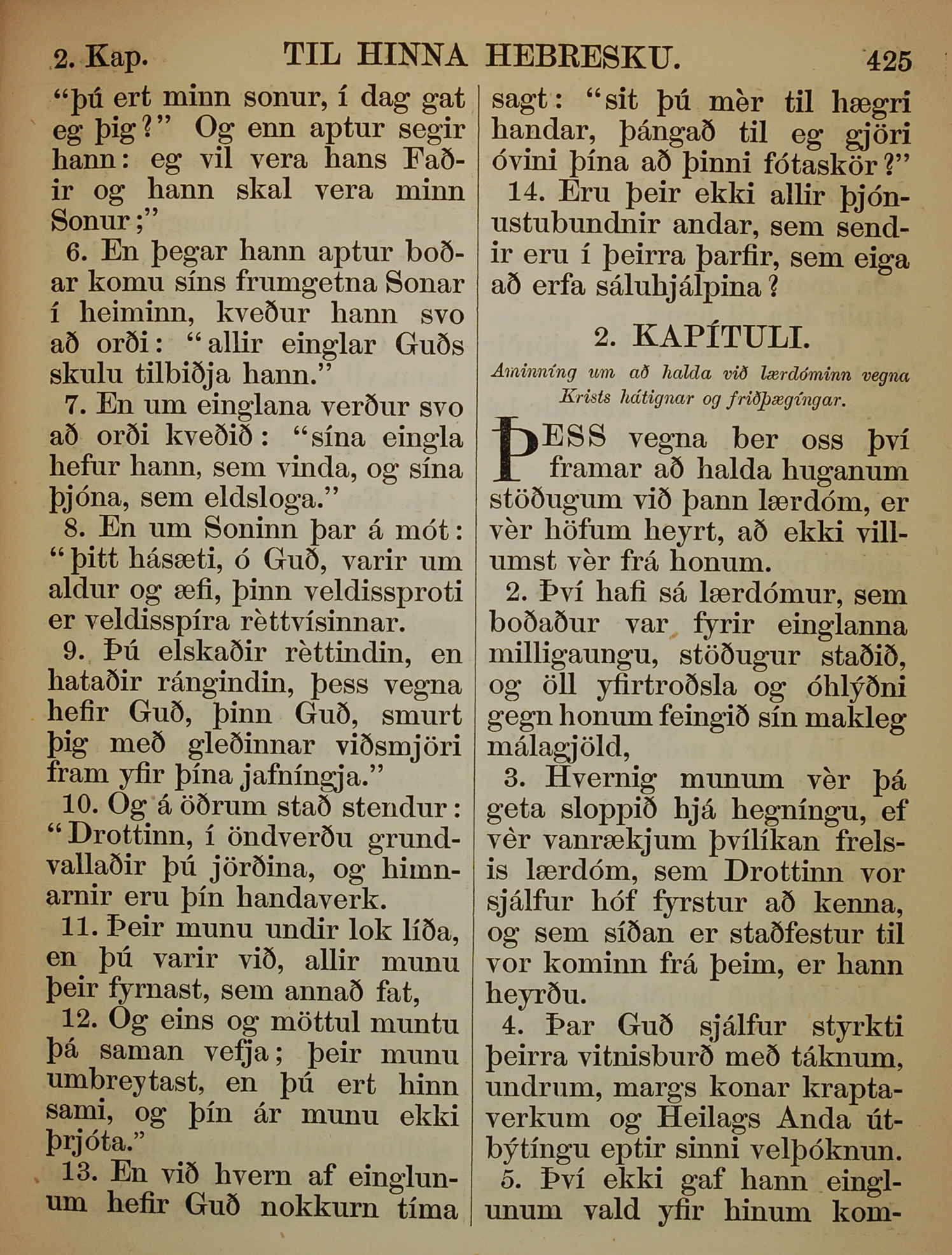 1863年冰島語新約全書 希伯來書 1 章 6 節到 2 章 5 節