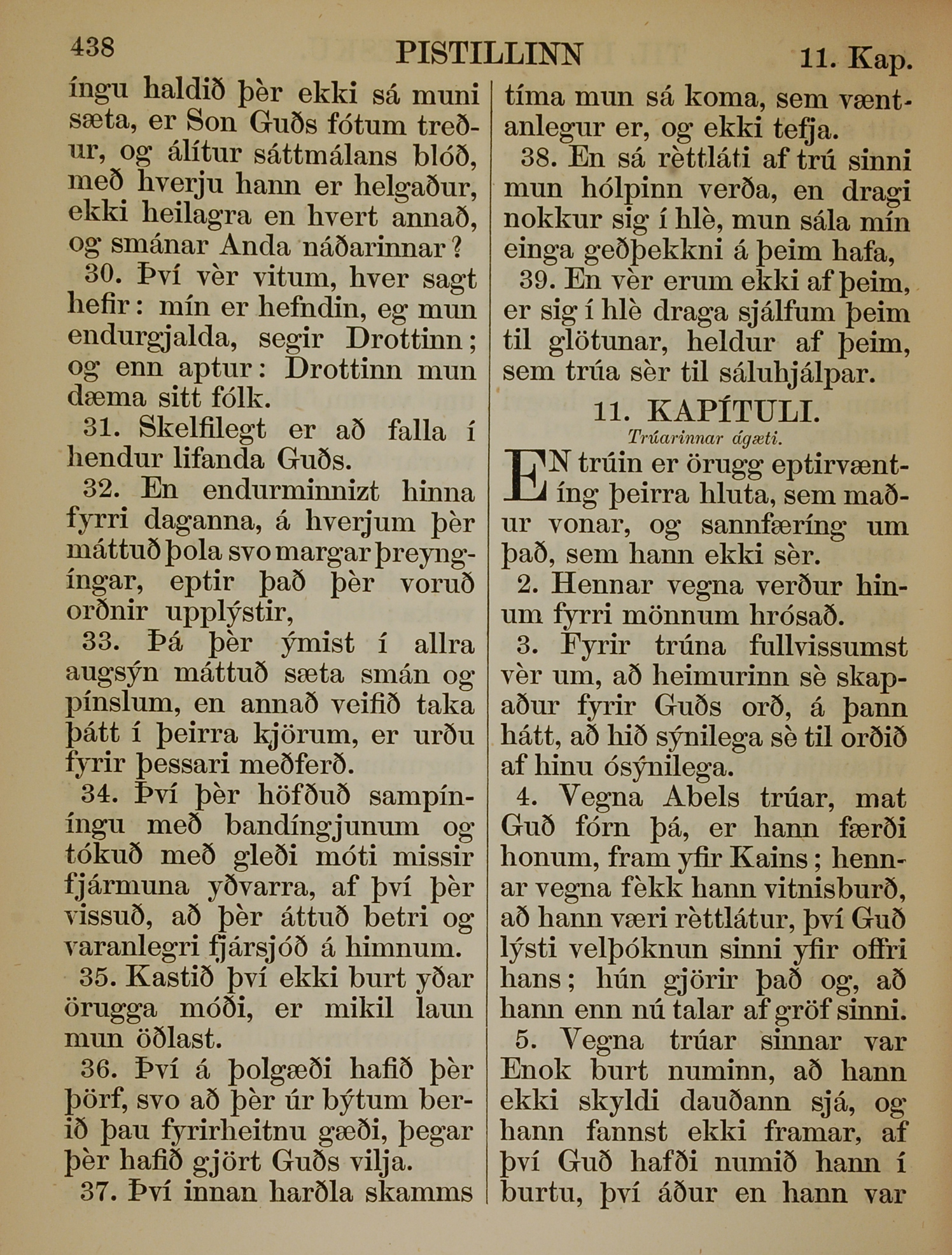 1863年冰島語新約全書 希伯來書 10 章 30 節到 11 章 5 節