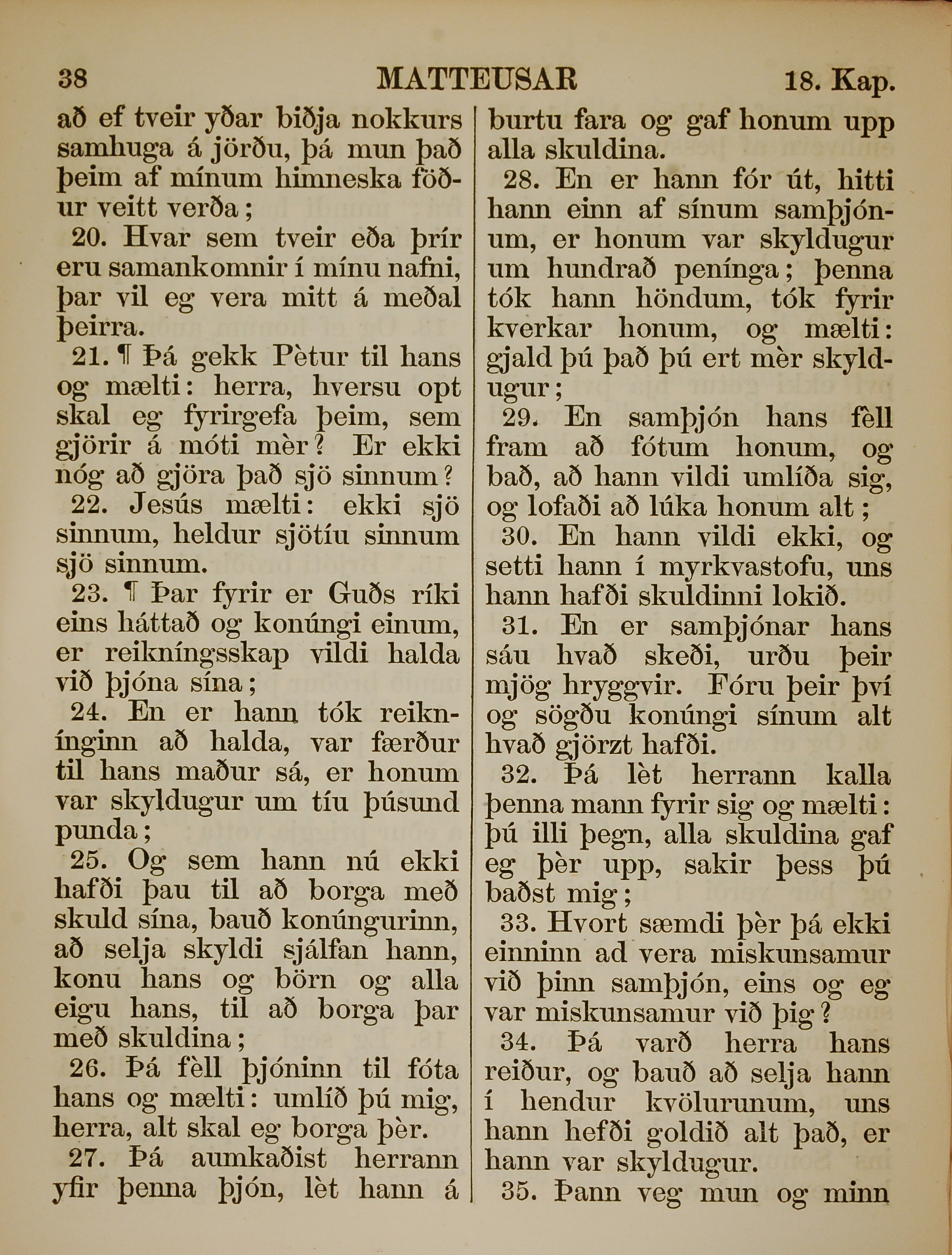 1863年冰島語新約全書 馬太福音 18 章 20 節到 18 章 35 節