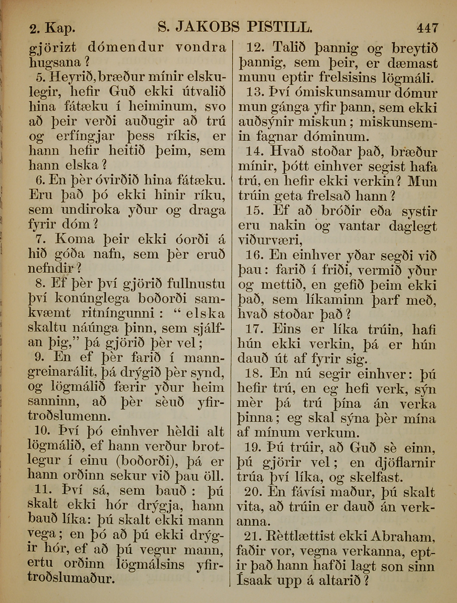 1863年冰島語新約全書 雅各書 2 章 5 節到 2 章 21 節