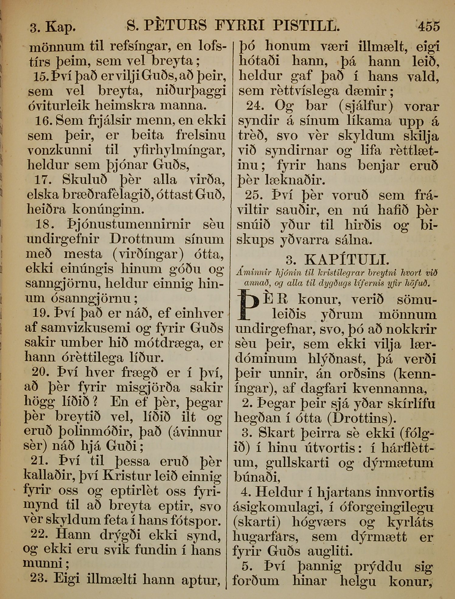 1863年冰島語新約全書 彼得前書 2 章 15 節到 3 章 5 節
