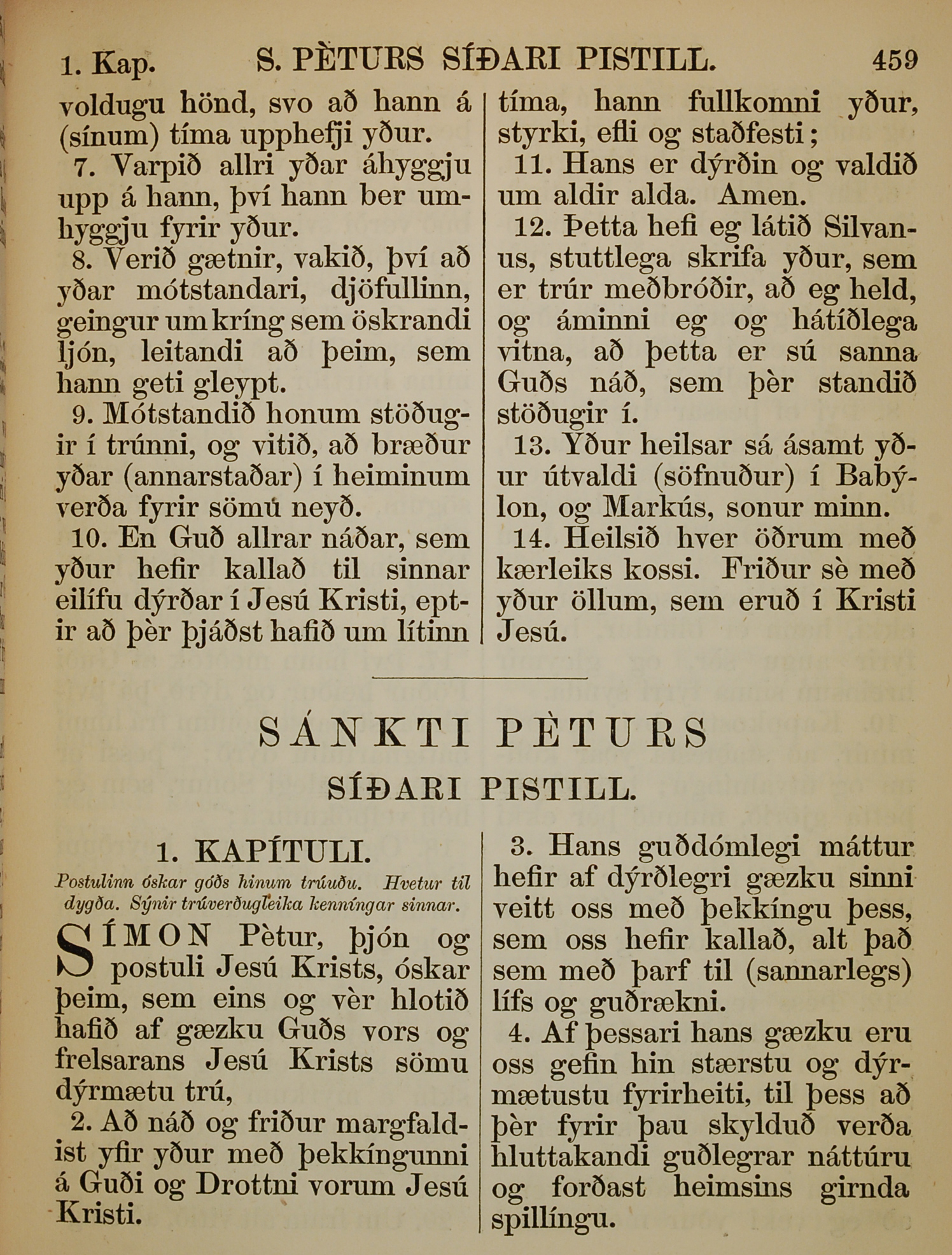 1863年冰島語新約全書 彼得前書 5 章 7 節到 5 章 14 節