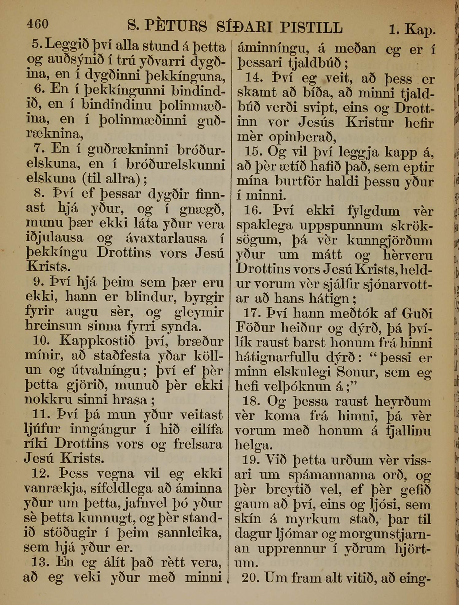 1863年冰島語新約全書 彼得後書 1 章 5 節到 1 章 20 節