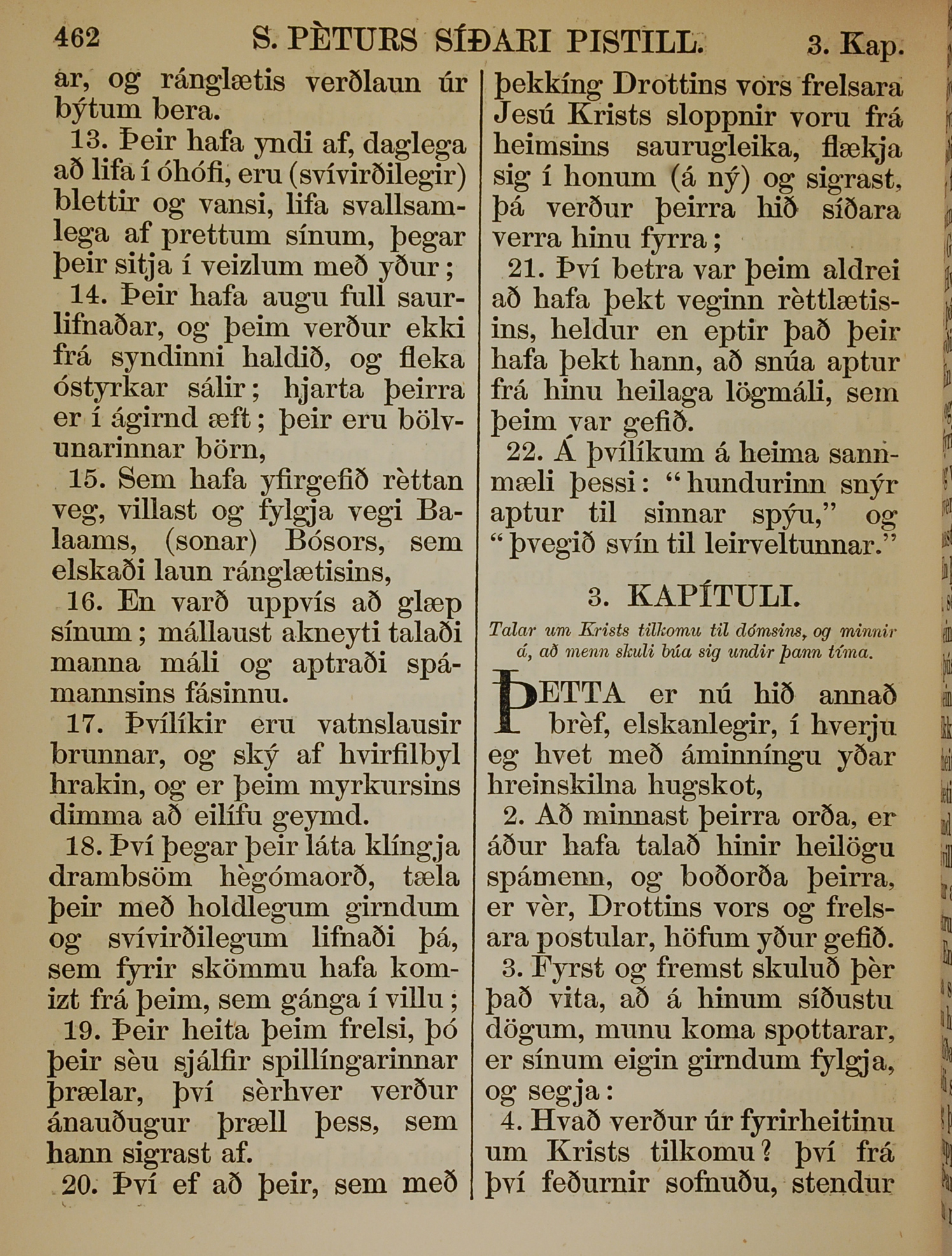 1863年冰島語新約全書 彼得後書 2 章 13 節到 3 章 4 節