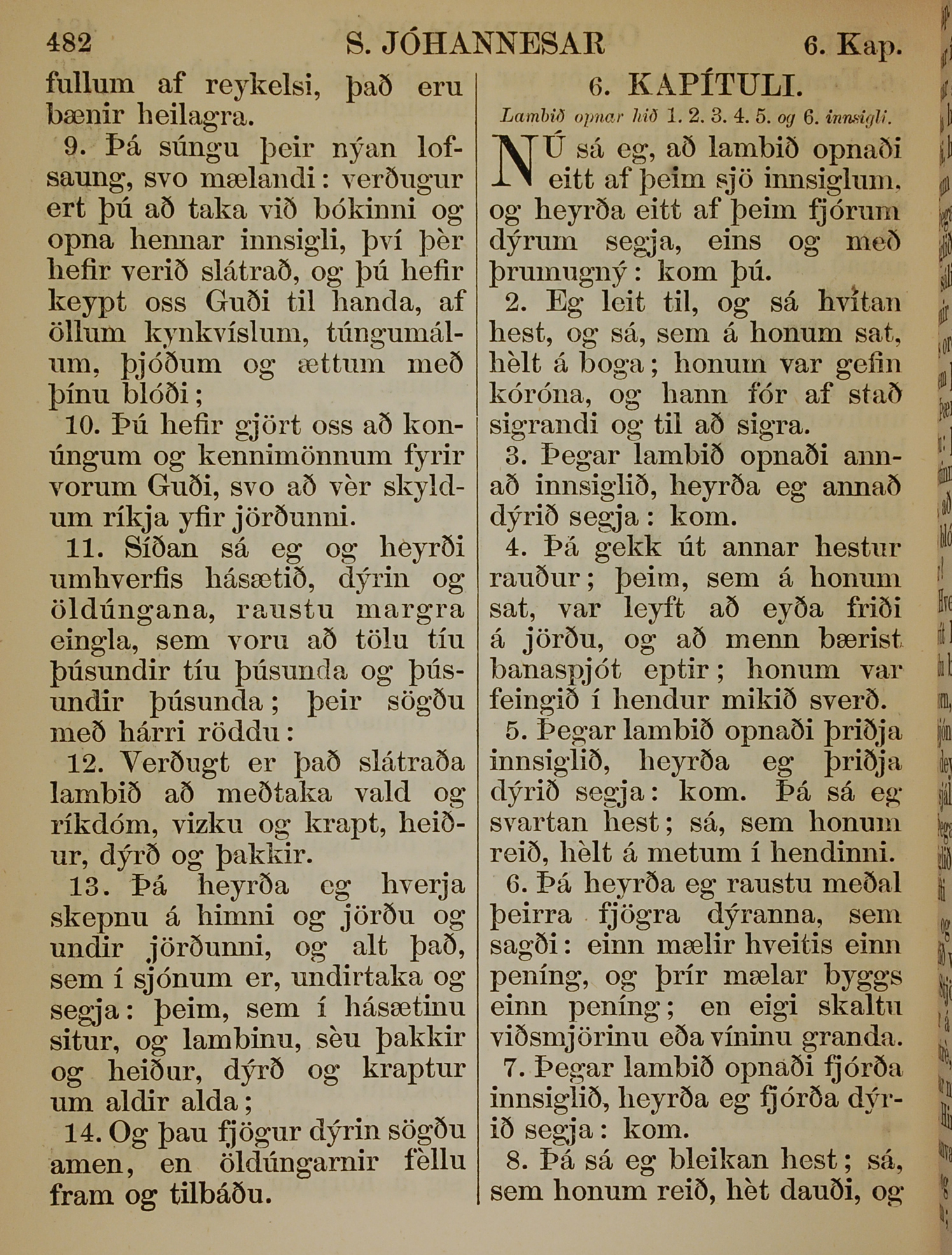 1863年冰島語新約全書 啟示錄 5 章 9 節到 6 章 8 節