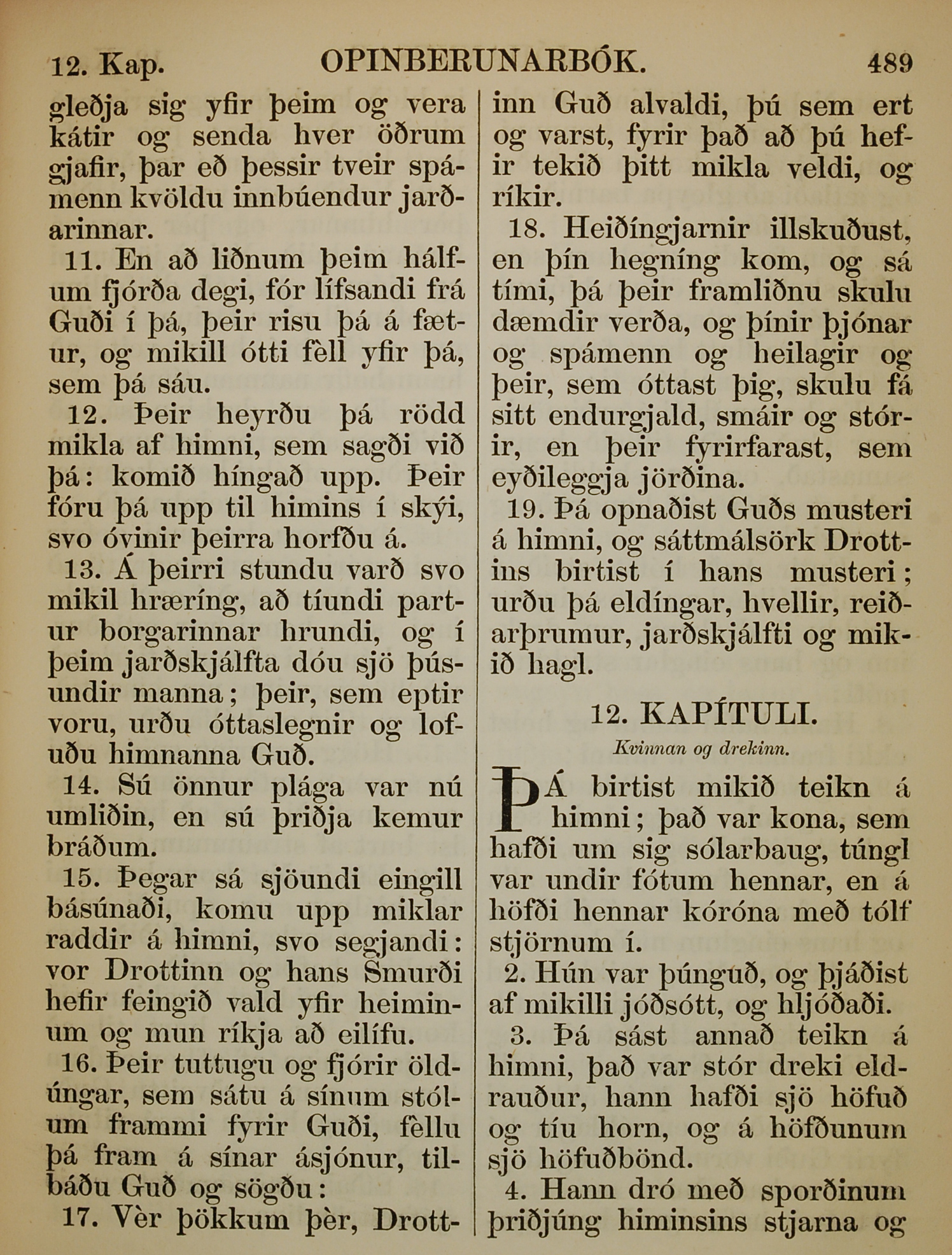 1863年冰島語新約全書 啟示錄 11 章 11 節到 12 章 4 節