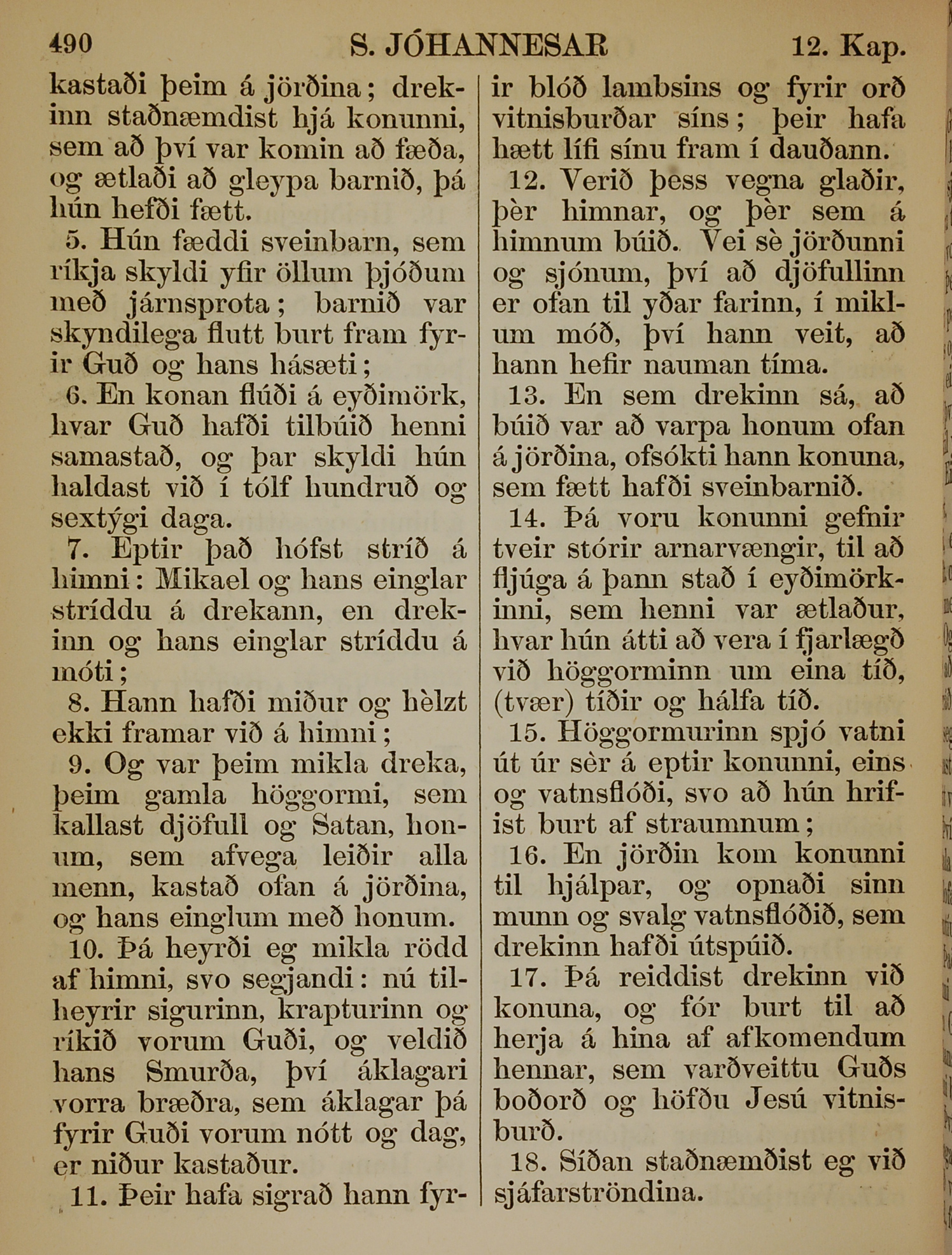 1863年冰島語新約全書 啟示錄 12 章 5 節到 12 章 18 節