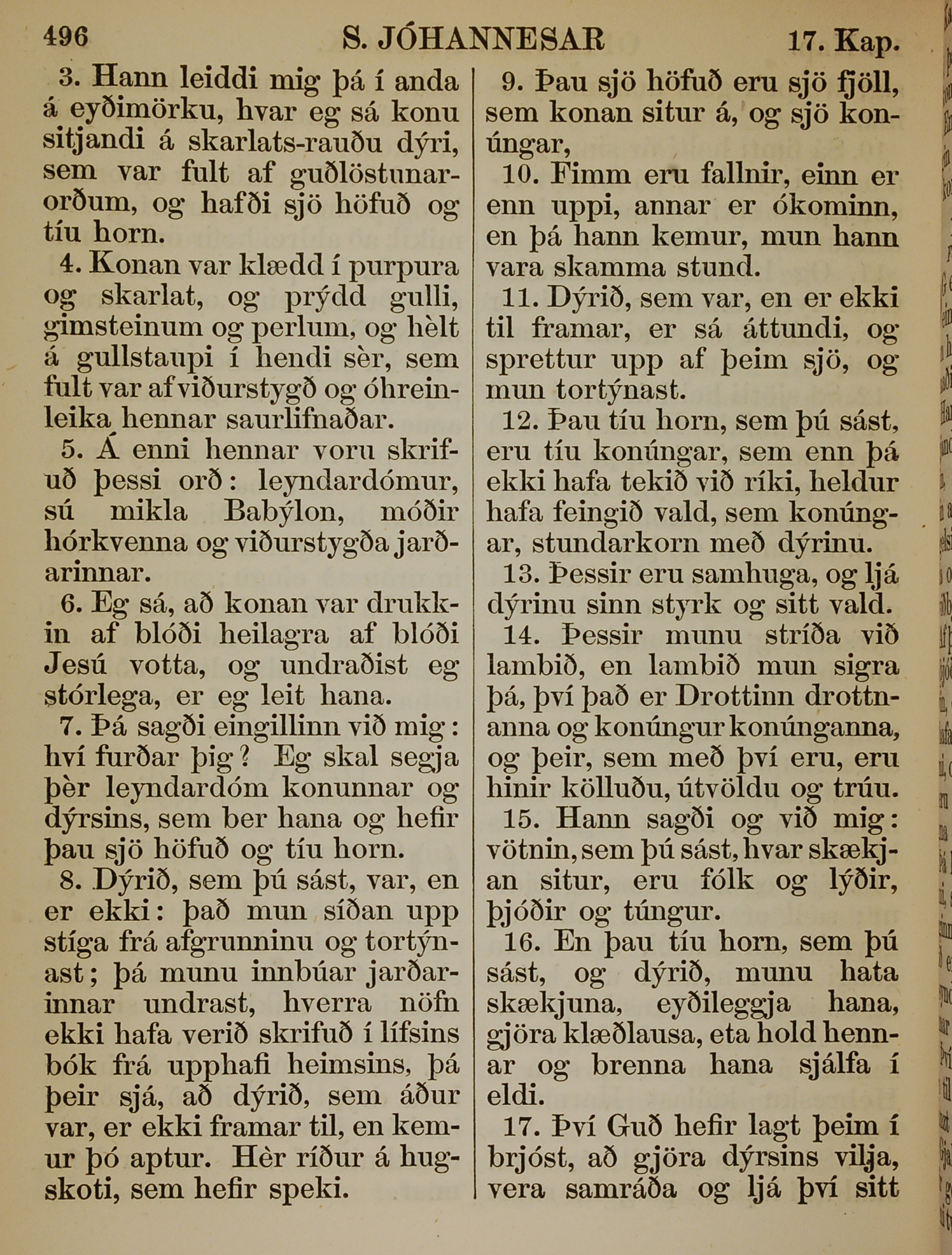 1863年冰島語新約全書 啟示錄 17 章 3 節到 17 章 17 節