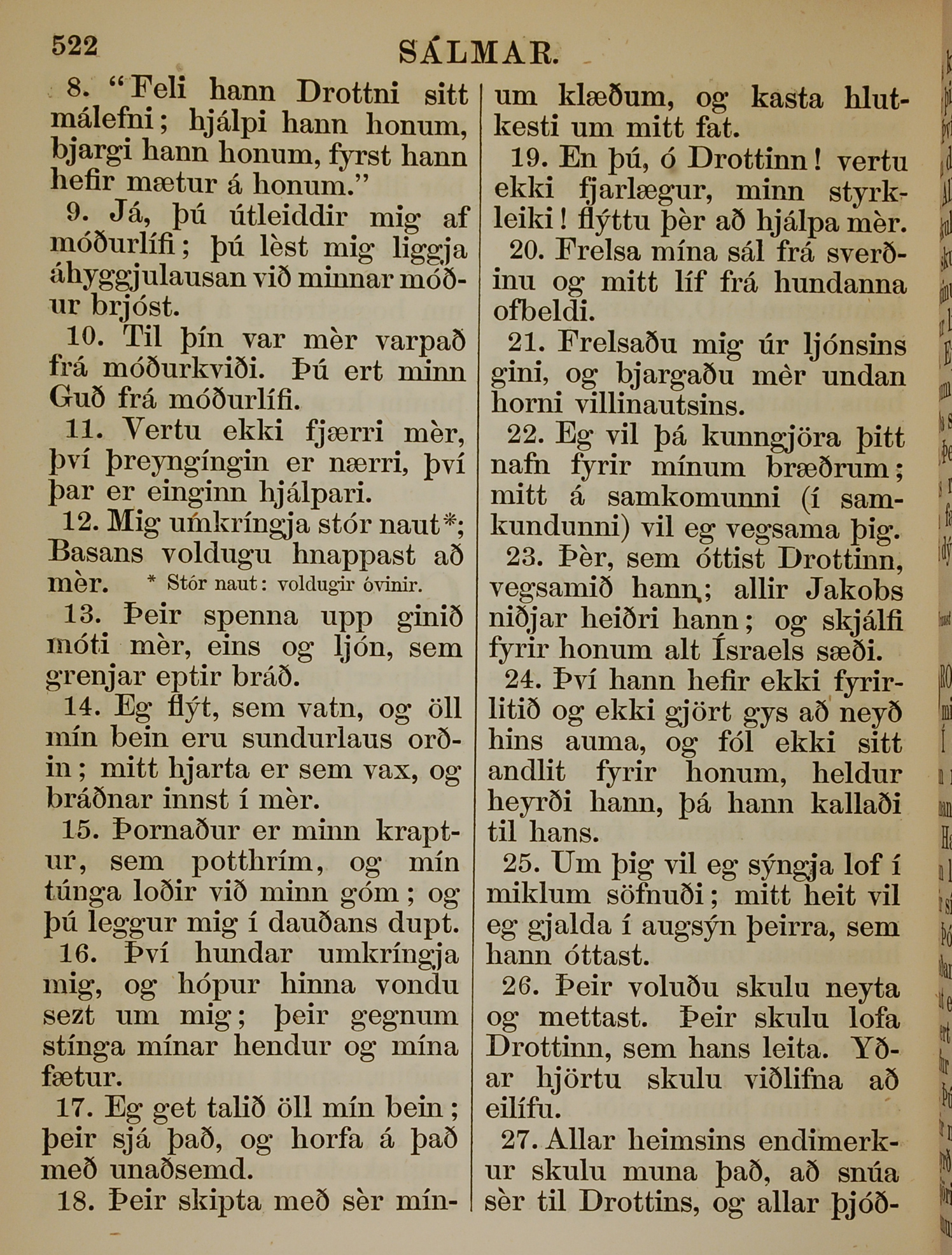 1863年冰島語新約全書 附錄 22 章 8 節到 22 章 27 節