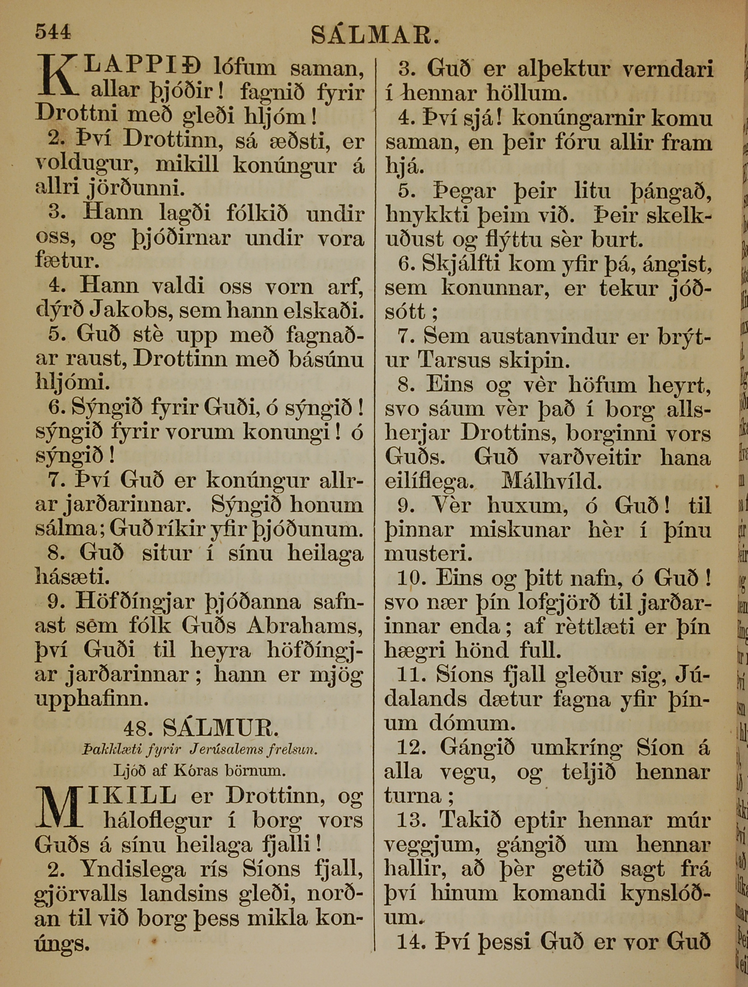 1863年冰島語新約全書 附錄 47 章 1 節到 48 章 14 節