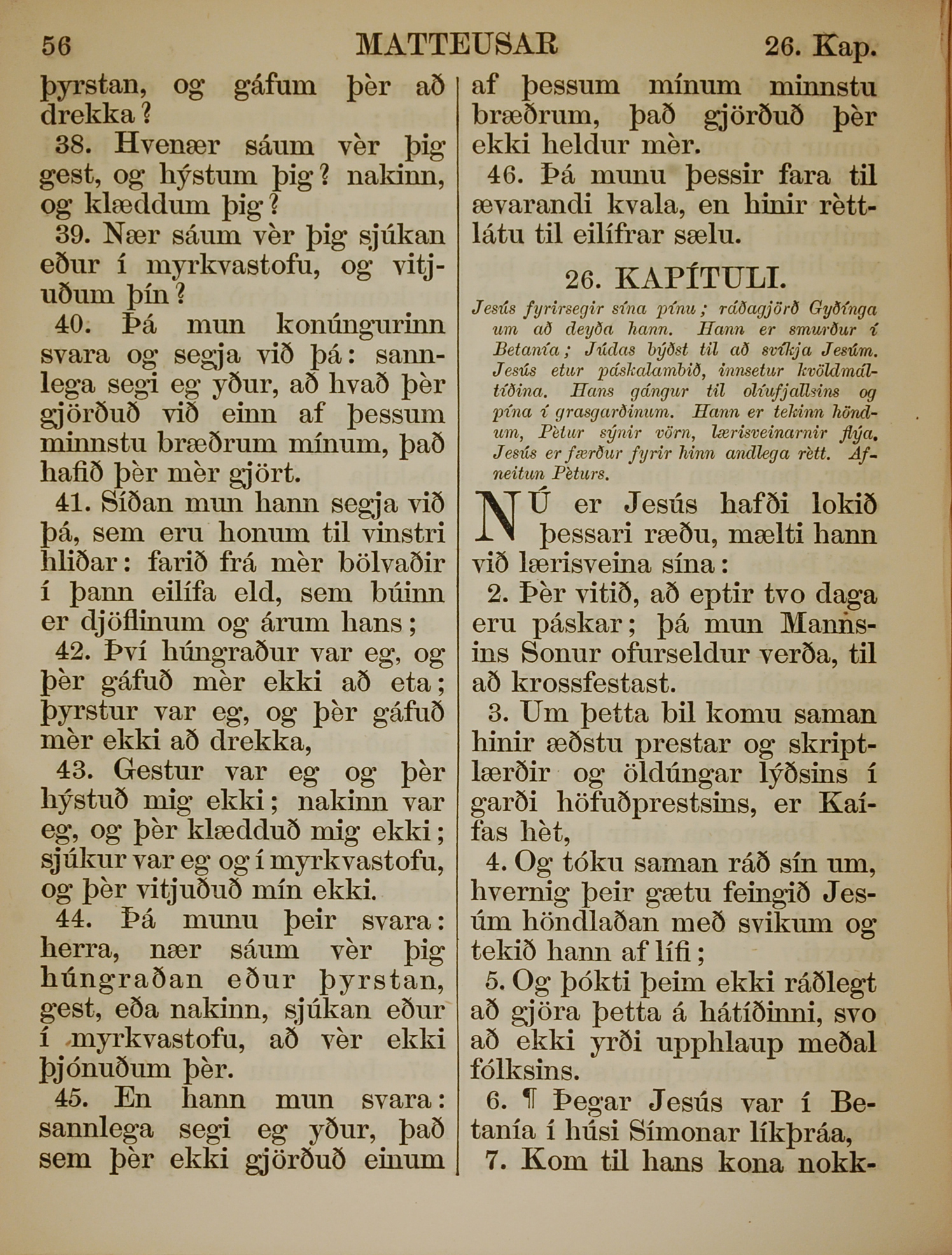 1863年冰島語新約全書 馬太福音 25 章 38 節到 26 章 7 節