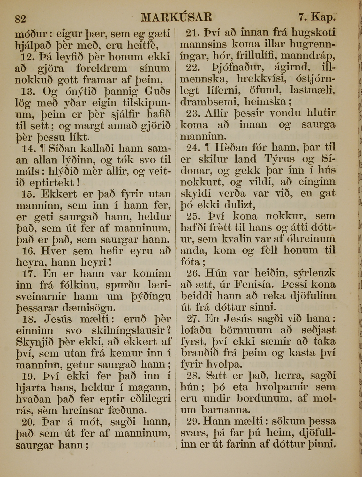 1863年冰島語新約全書 馬可福音 7 章 12 節到 7 章 29 節