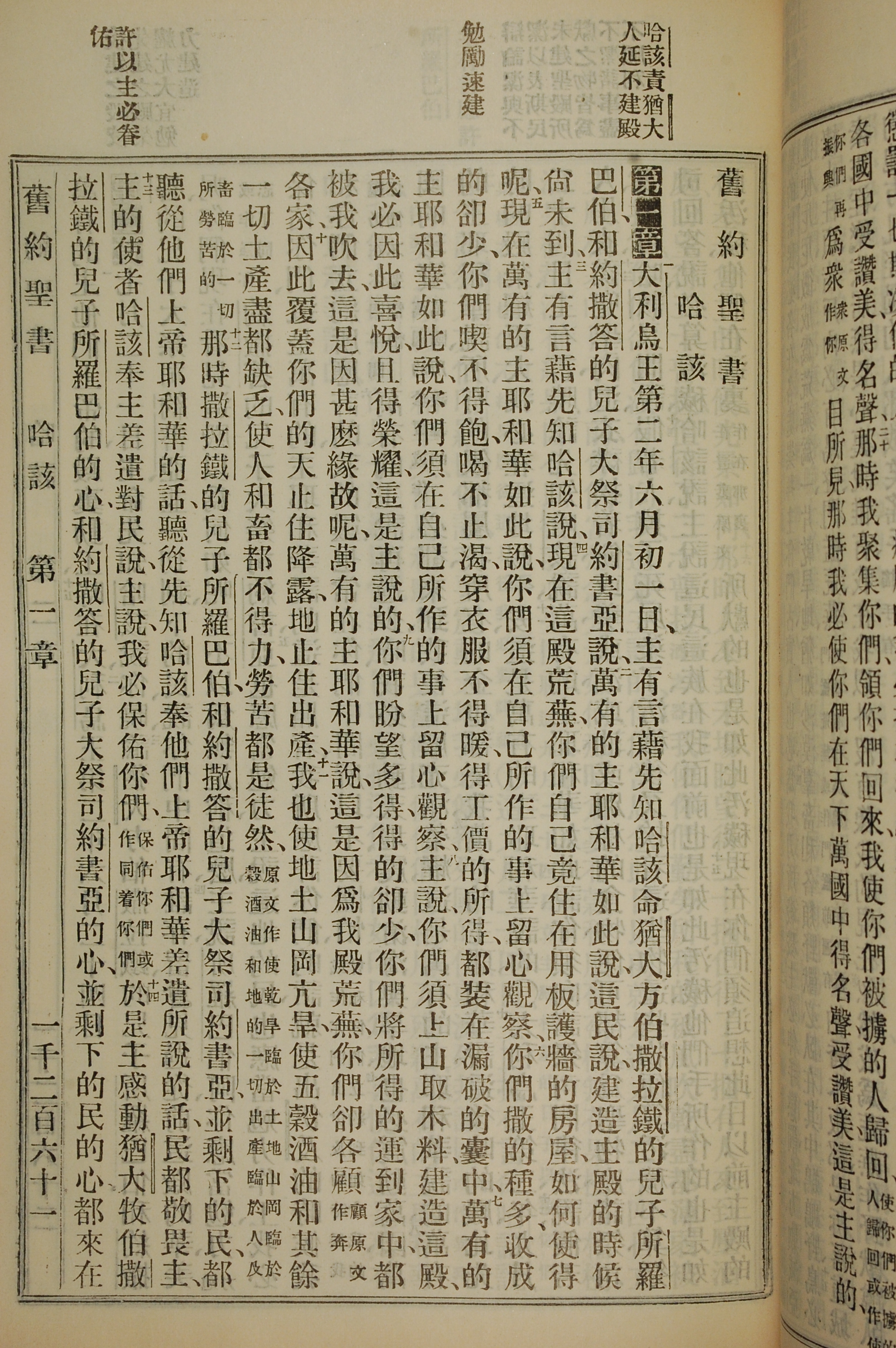 1912年新舊約聖書 哈該書 1 章 1 節到 1 章 14 節