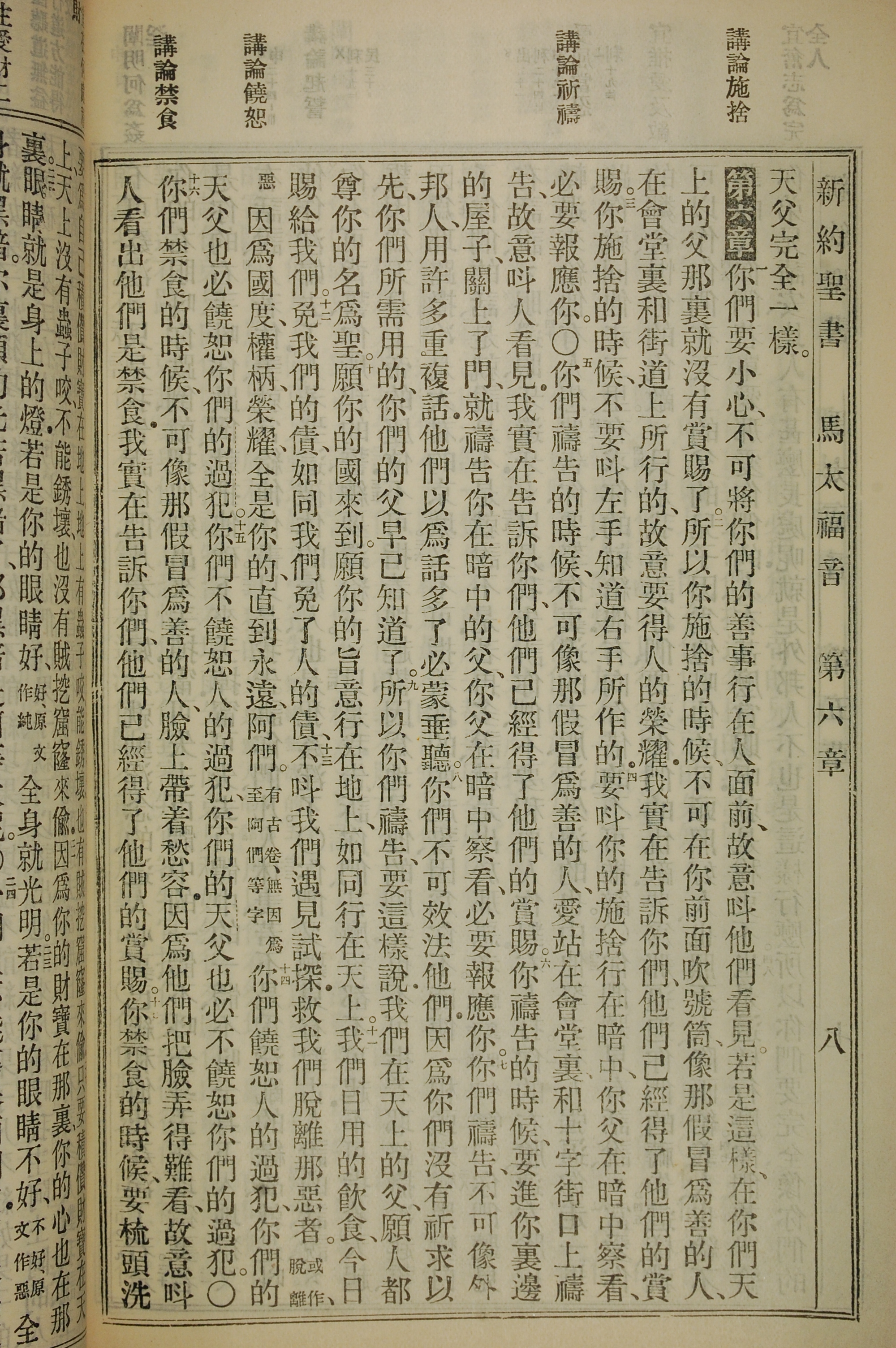 1912年新舊約聖書 馬太福音 6 章 1 節到 6 章 17 節