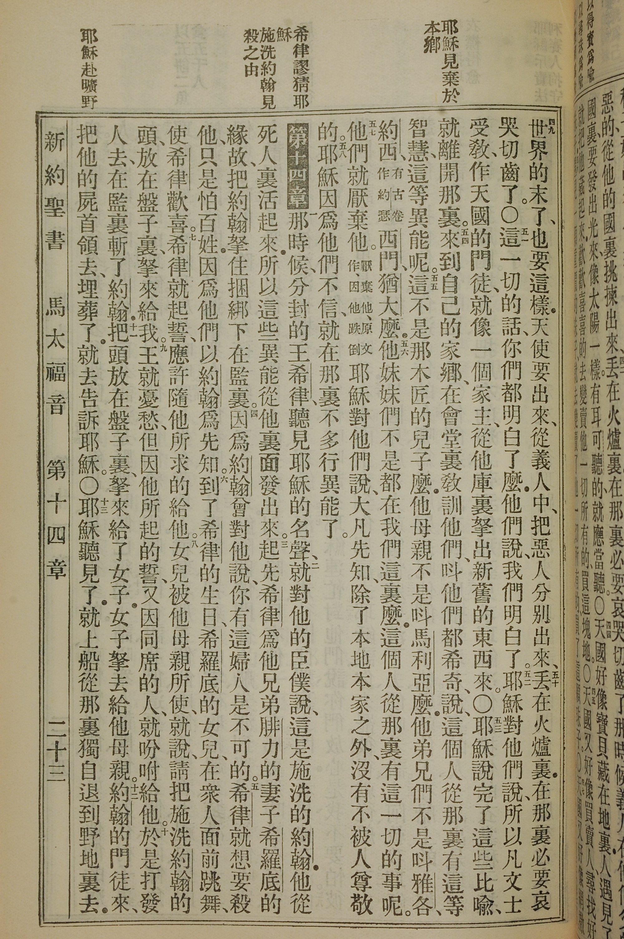 1912年新舊約聖書 馬太福音 13 章 49 節到 14 章 13 節