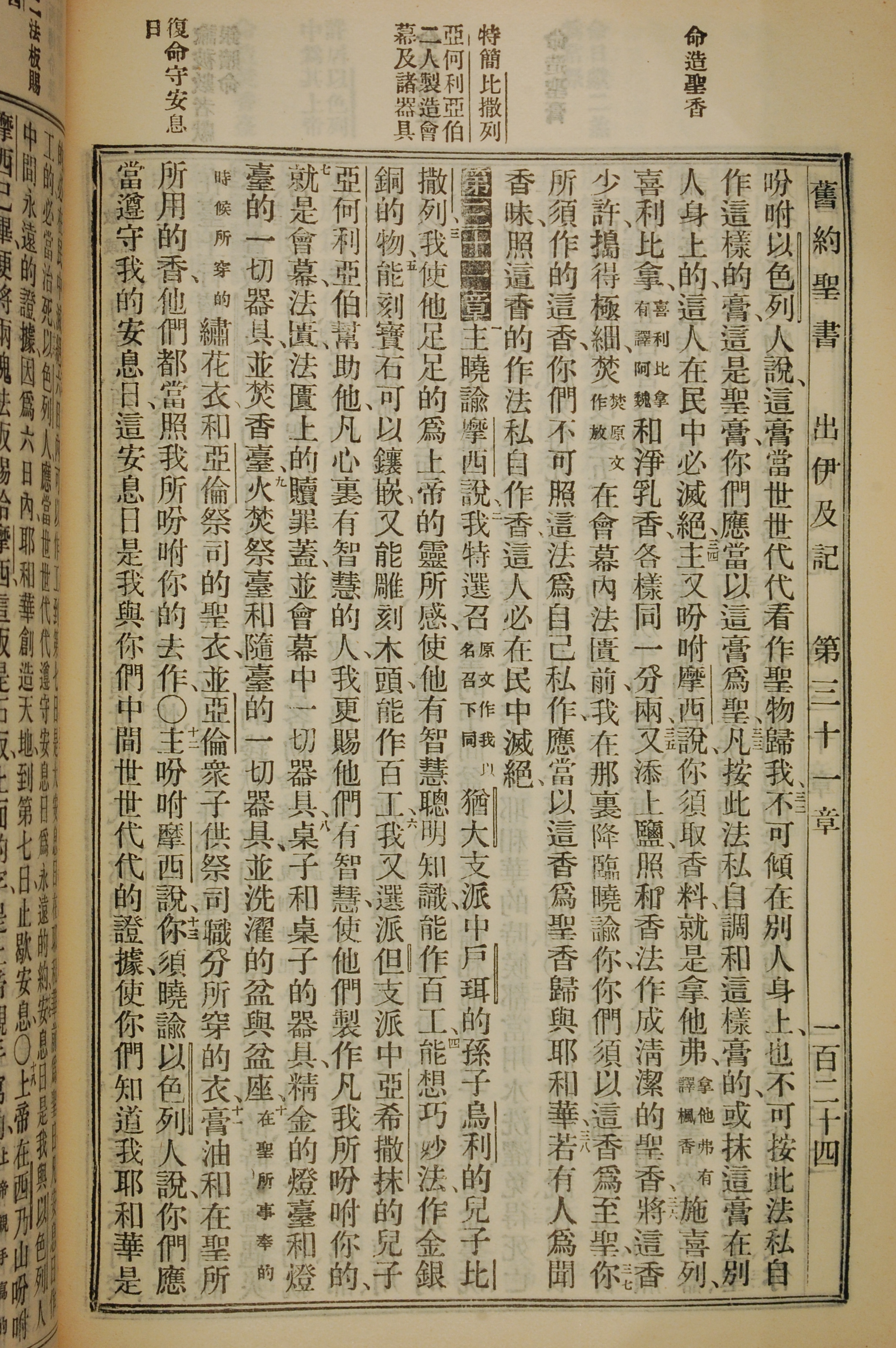 1912年新舊約聖書 出埃及記 30 章 31 節到 31 章 13 節