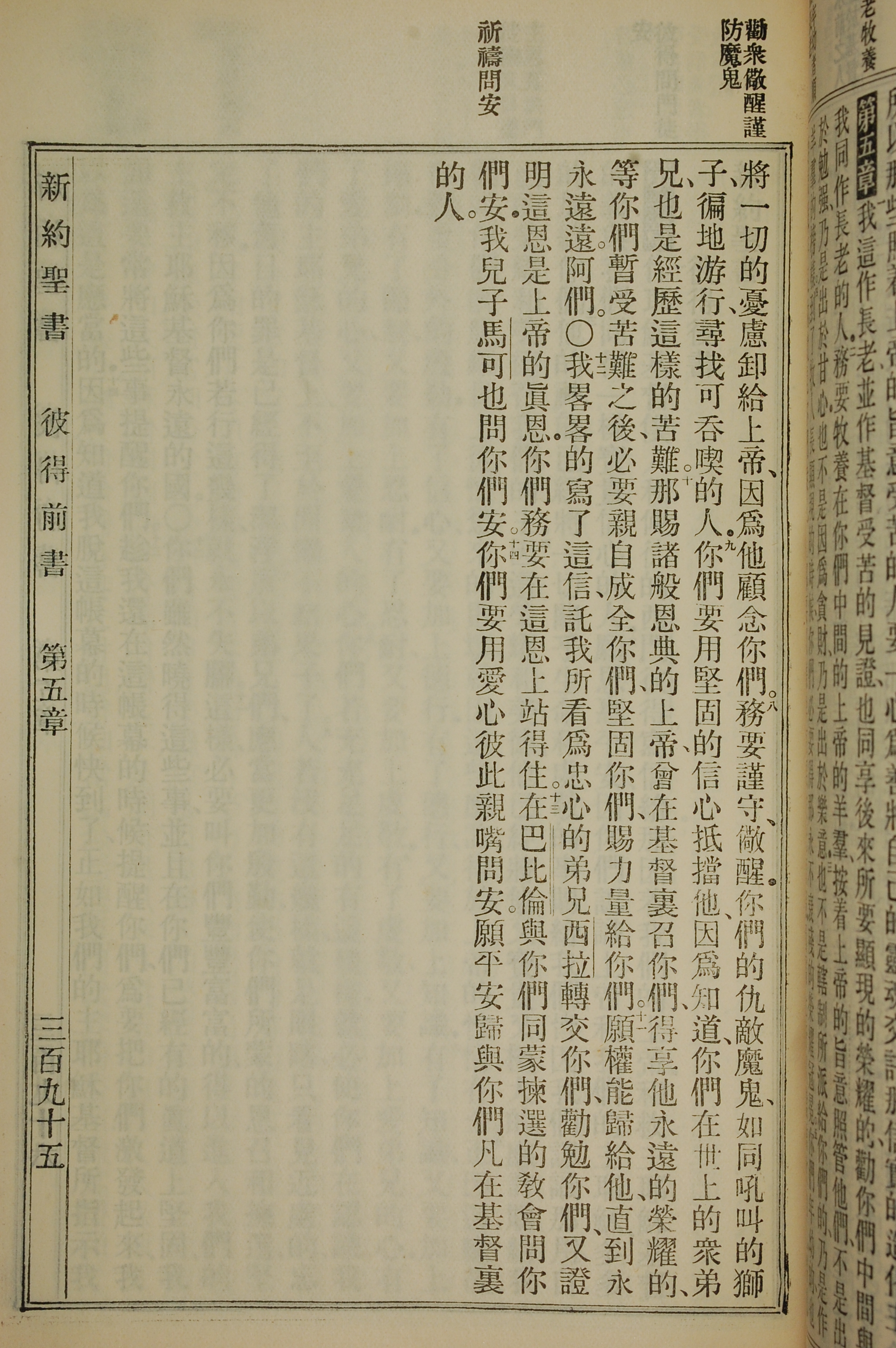 1912年新舊約聖書 彼得前書 5 章 8 節到 5 章 14 節