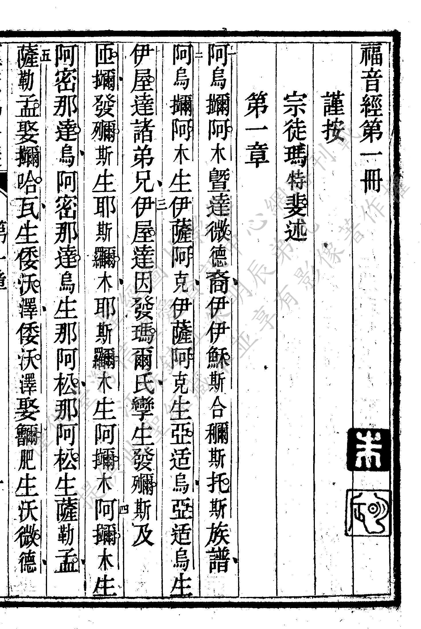 1864年新約全書 馬太福音 1 章 1 節到 1 章 5 節